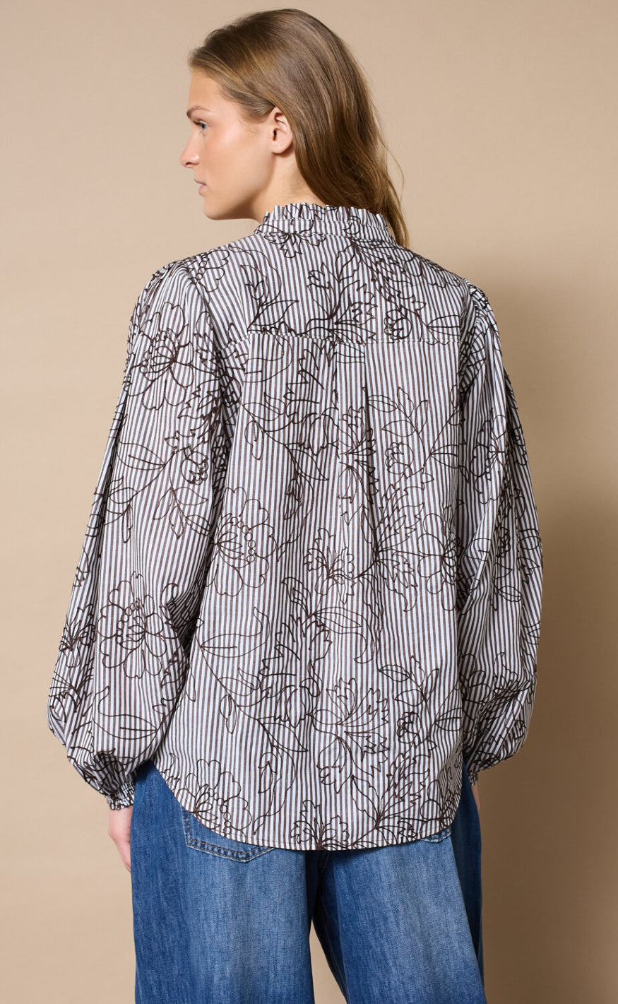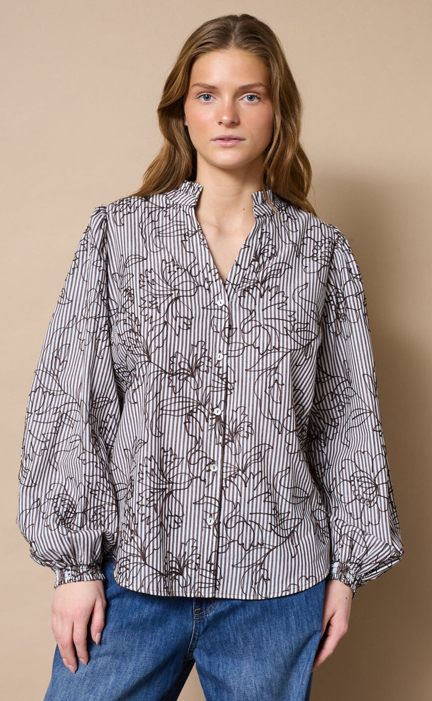 Stribet skjorte fra Love & Divine med et elegant blomstermønster i kontrastfarve.