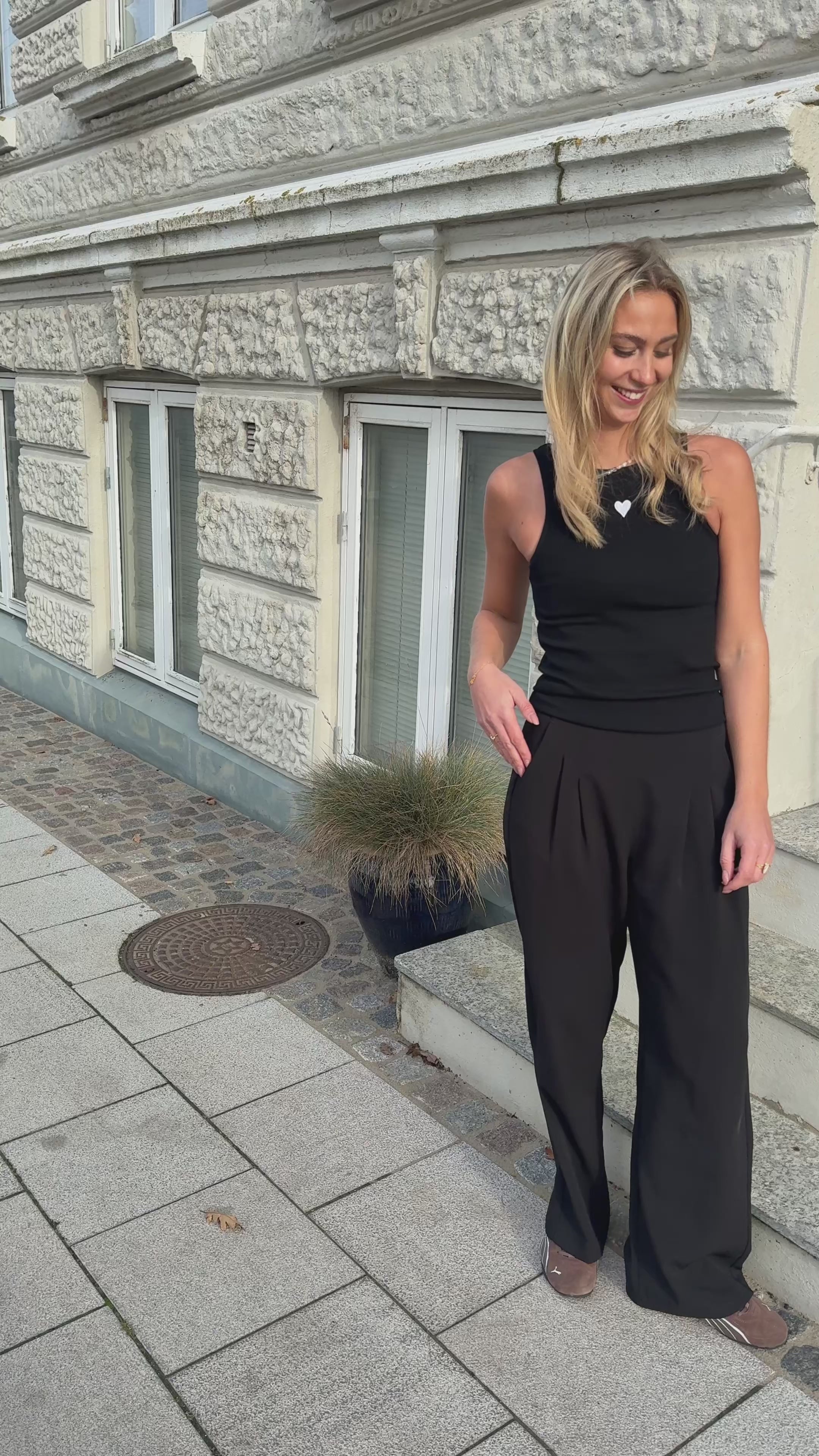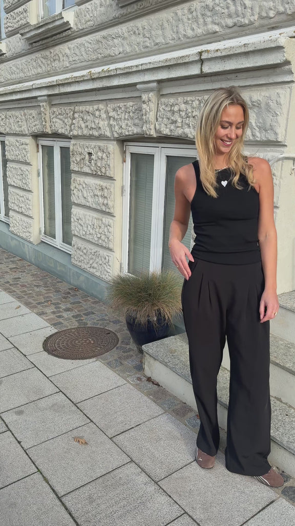 Flot top fra INA Copenhagen i sort med et broderet hjerte i hvid.