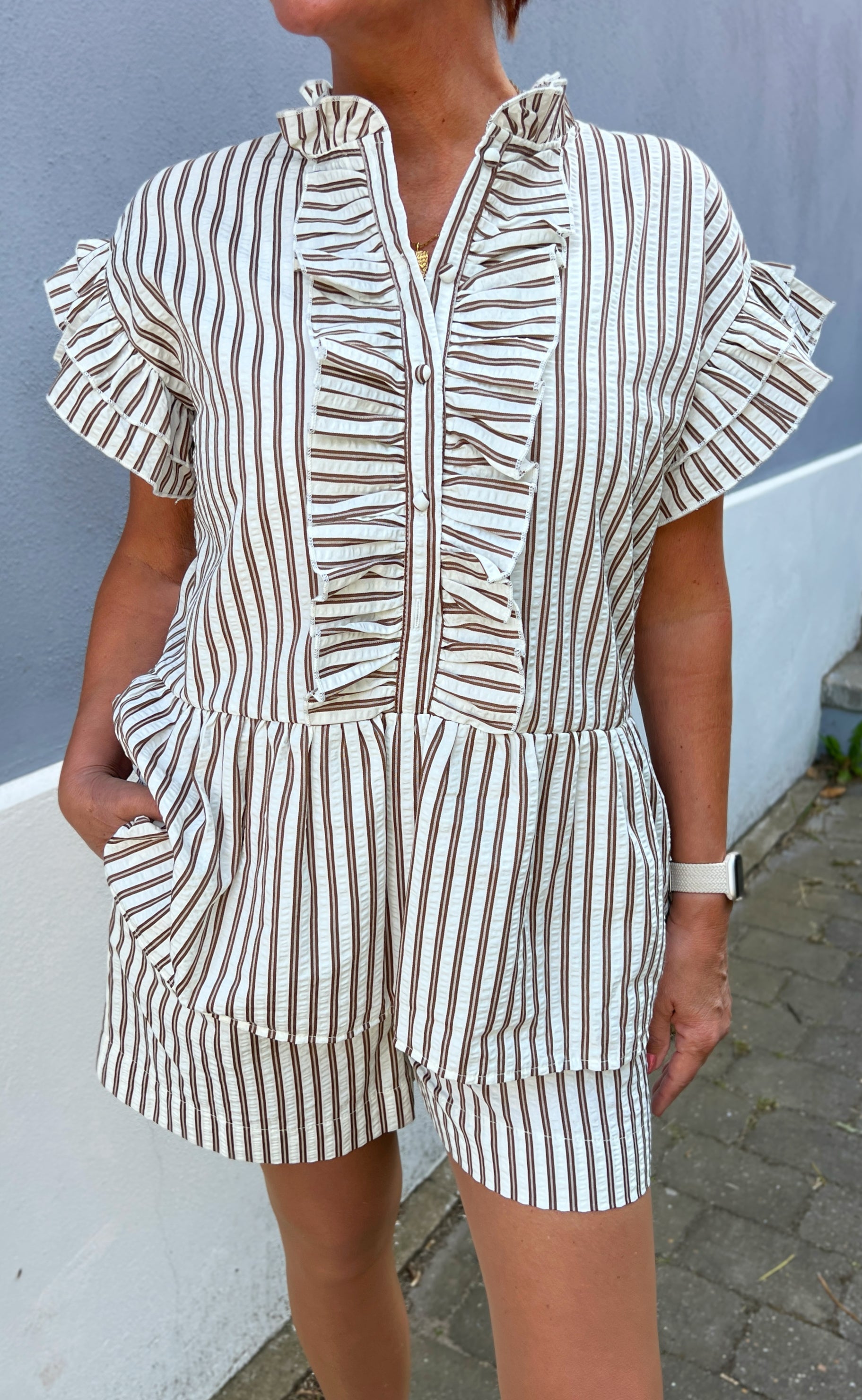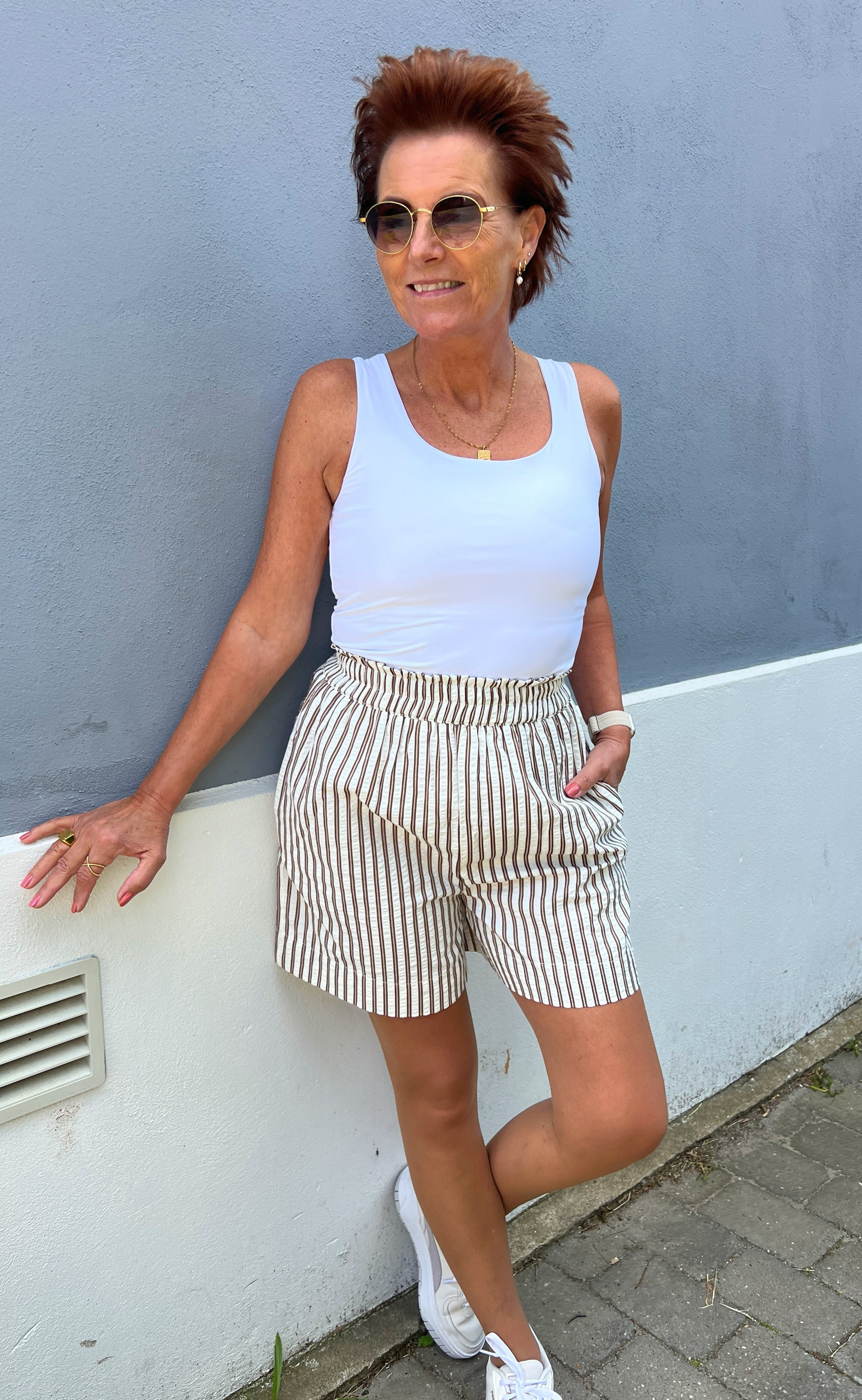 Flotte shorts fra INA Copenhagen med striber i hvid og brun.