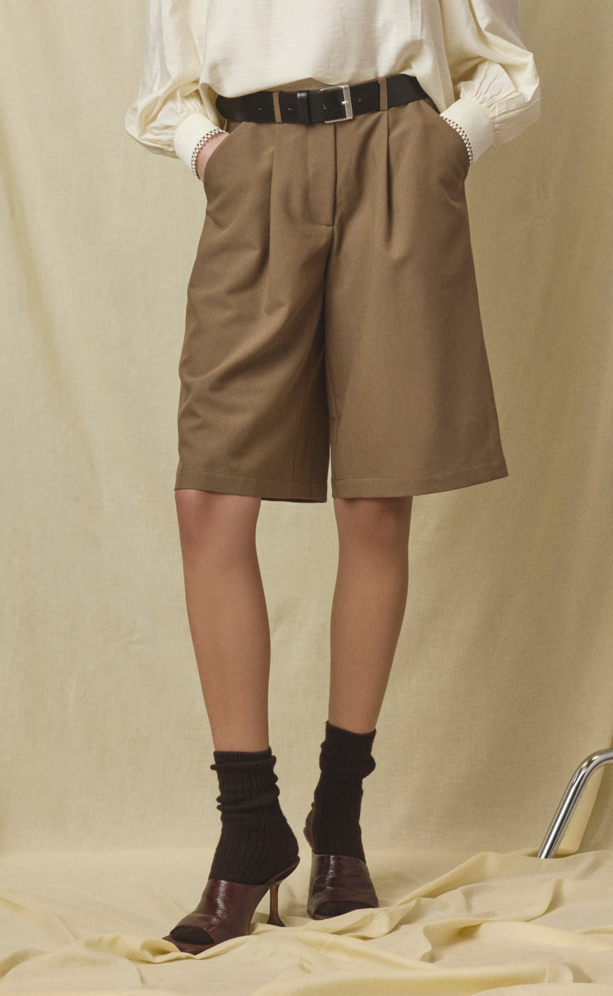 Klassiske shorts fra Love & Divine i en ensfarvet beige nuance.