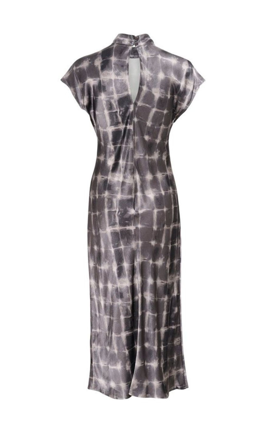 Kjole fra Culture med høj hals, korte ærmer og flot mønster