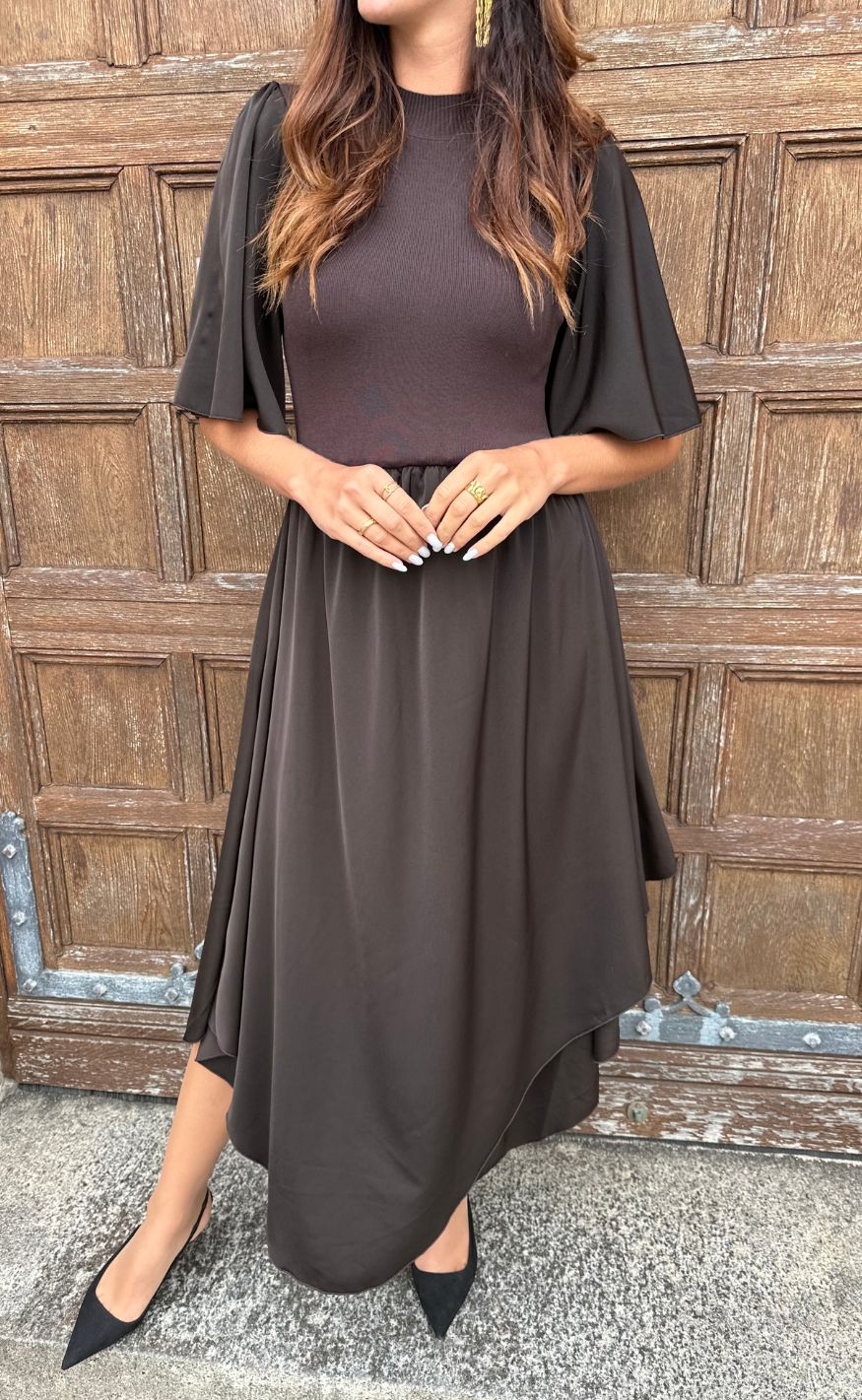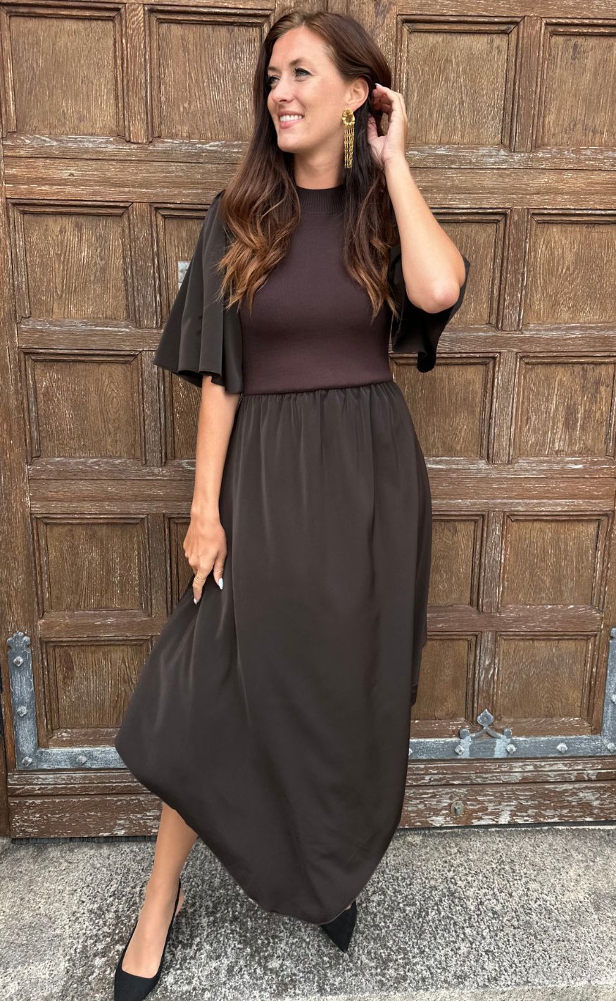 Stilren kjole fra Gestuz i en brun nuance.