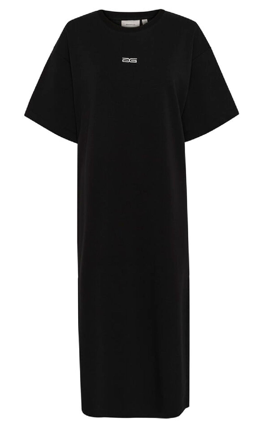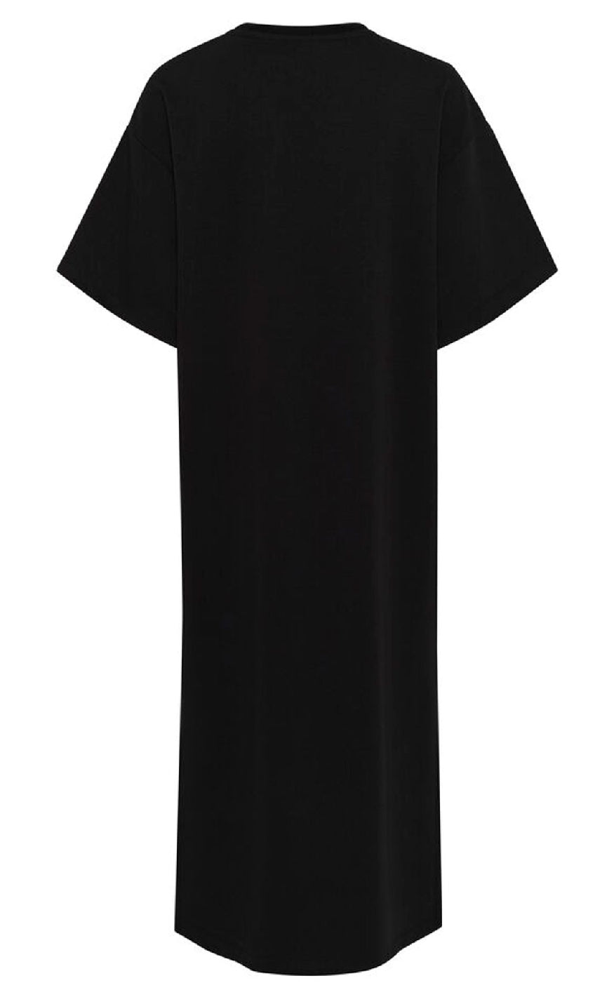 Afslappet kjole fra Gestuz i sort med hvid print fortil.