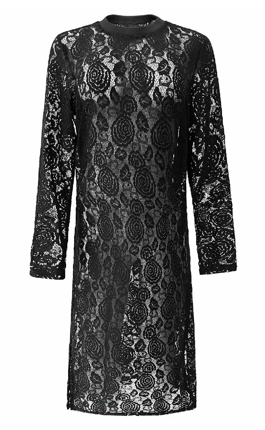 Sort blondekjole fra Liberté med lange ærmer og rund hals – ideel til lag-på-lag styling og et elegant look.