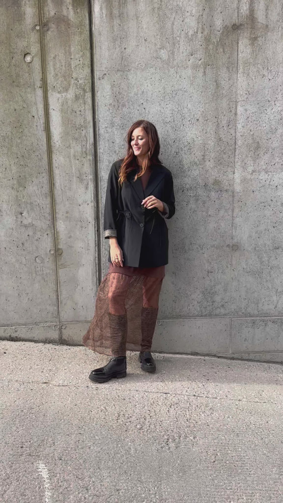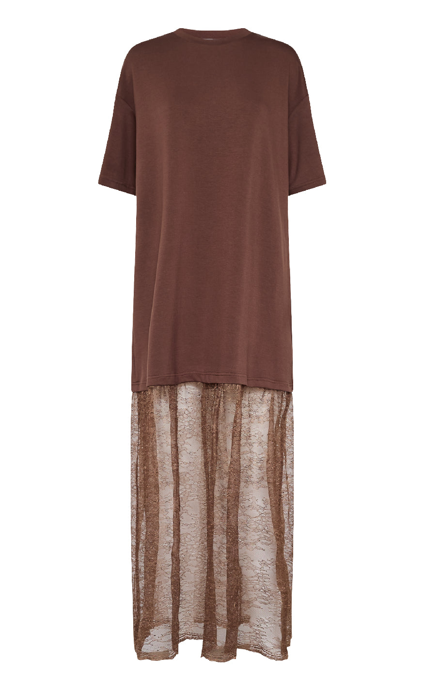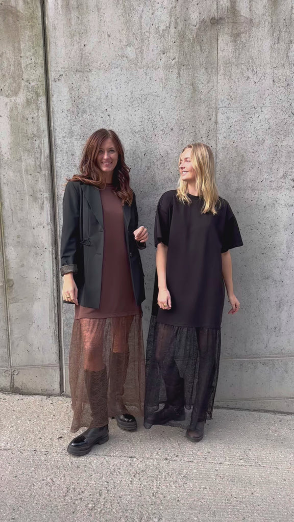 Kjolen kommer i en gennemsigtig kvalitet samt har korte ærmer.