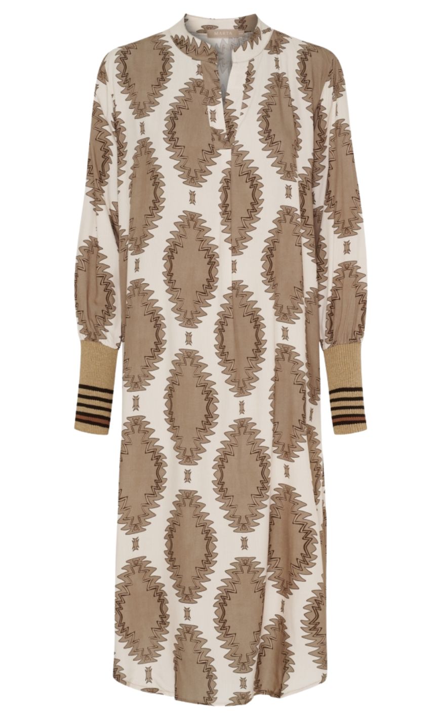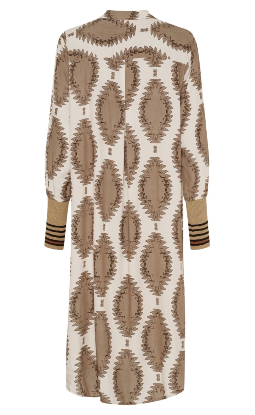 Fin kjole i offwhite og beige farver, kjolen er i et let matriale.