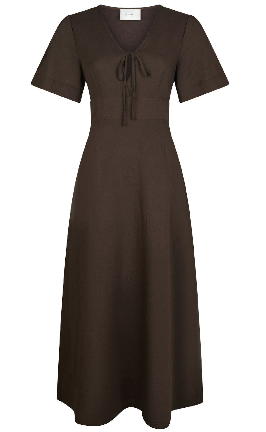 Neo Noir Kjole - Ilsie Linen - Dark Brown