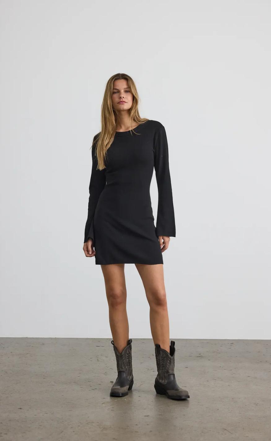 Kjolen er simpel sort, med lange ærmer som puffer lidt enden.