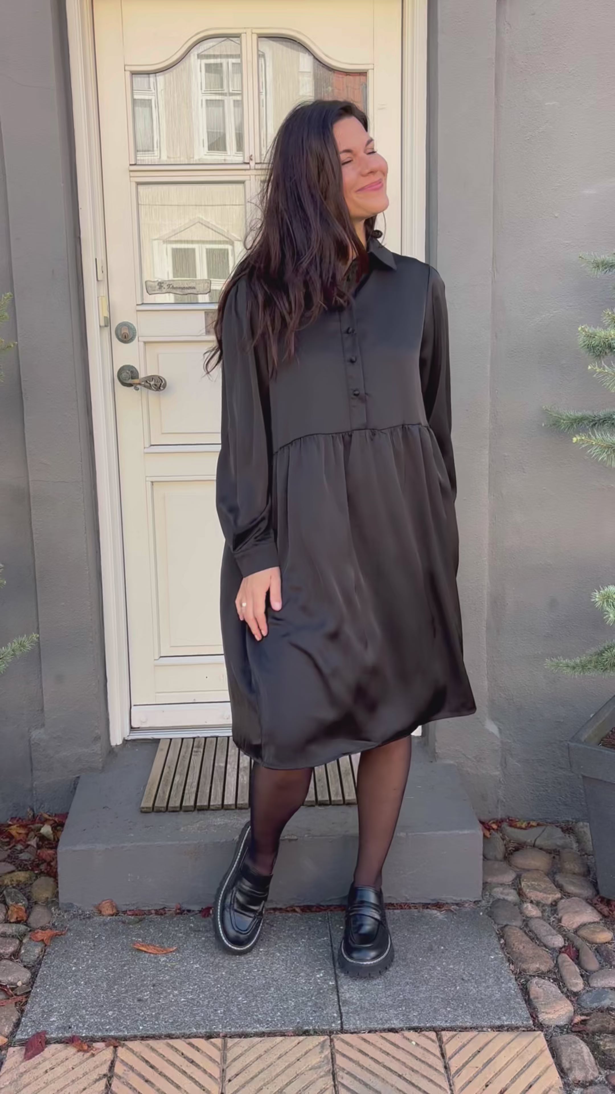 Fin og eksklusiv kjole fra Say INA Copenhagen i sort satin-look kvalitet.