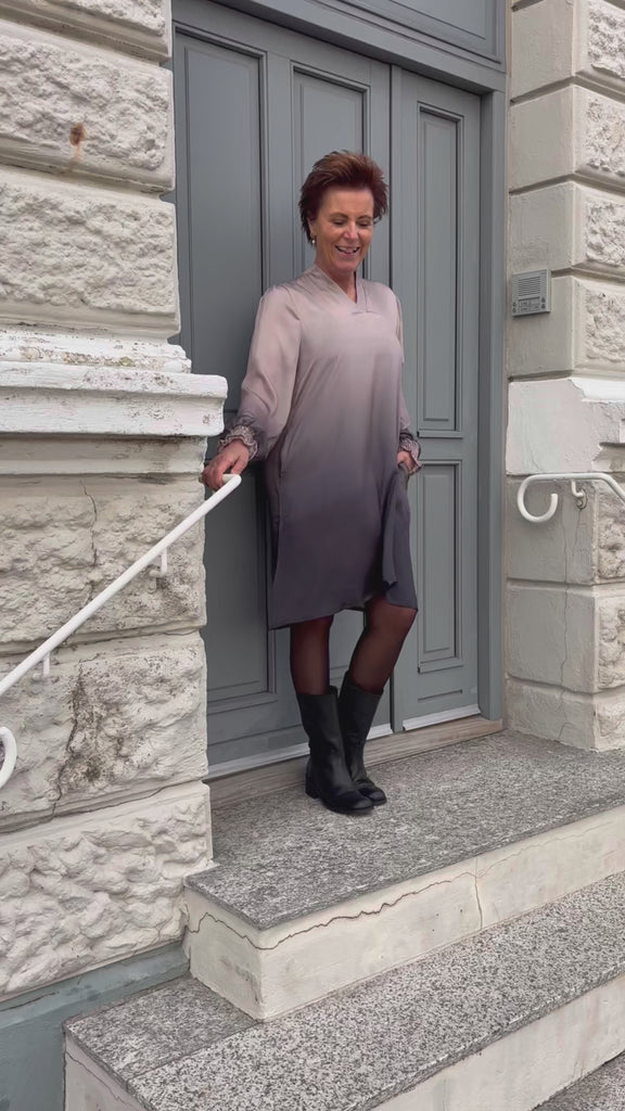 Smuk kjole fra Say INA i de flotteste farvenuancer, der fader fra lys til mørk.