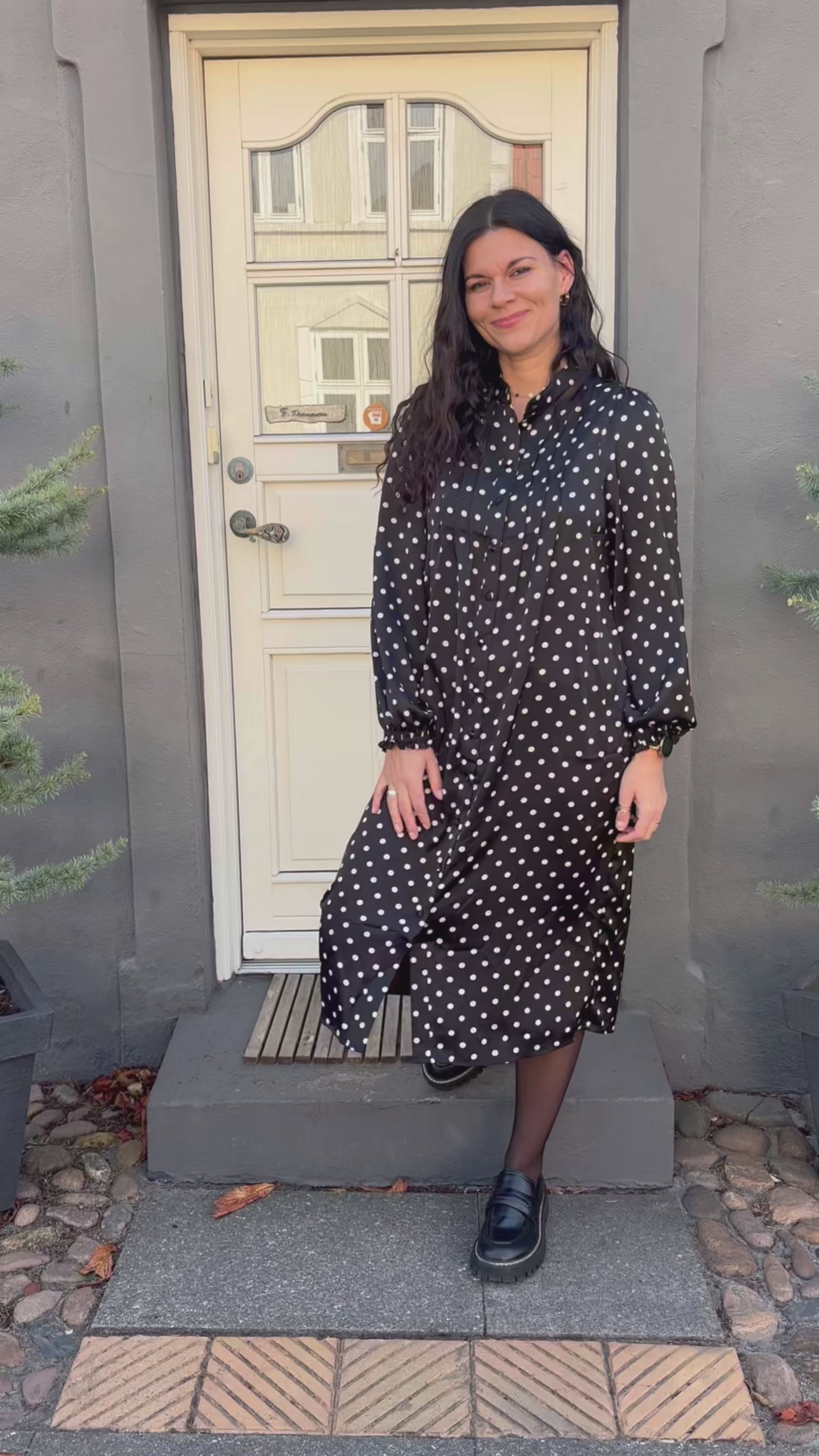Virkelig smuk kjole fra Say INA Copenhagen i sort med hvide prikker.