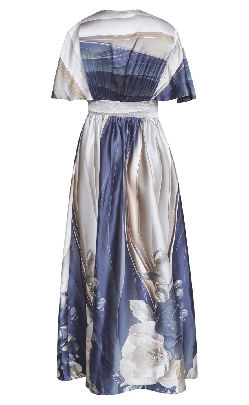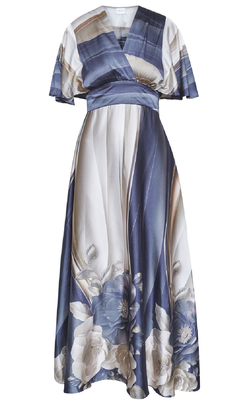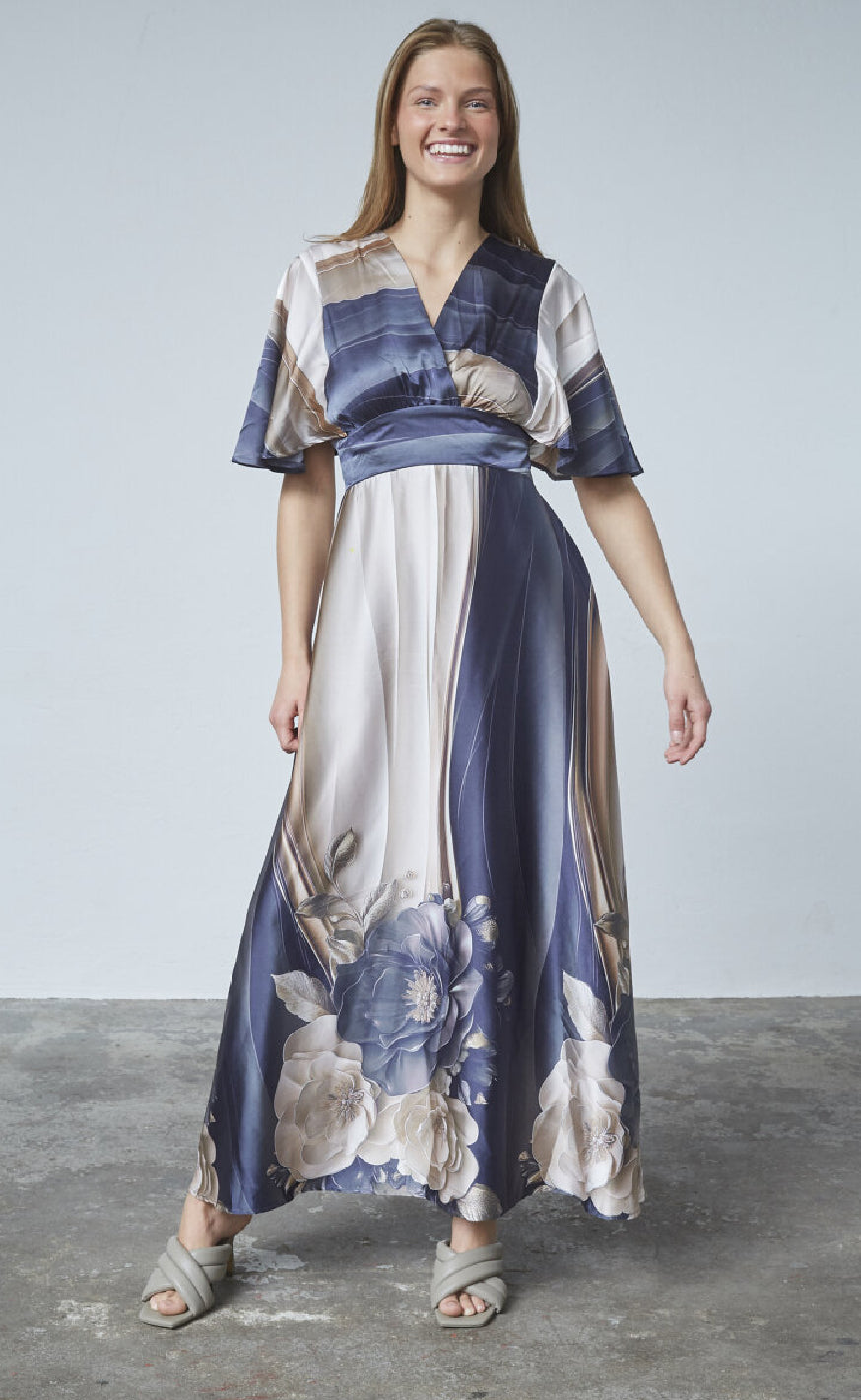 Kjolen er lang med løse ærmer, og passer perfekt til finere lejligheder.