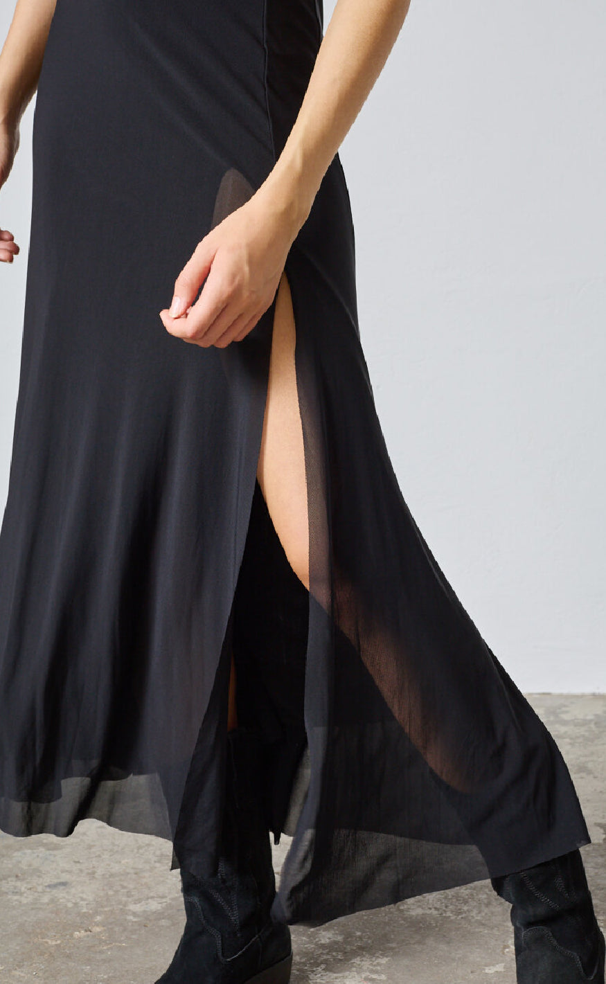 Kjole fra Sisters Point med lang, ærmeløs pasform og høj halsudskæring. Den har et løst design forneden og en slids i siden for et elegant look.