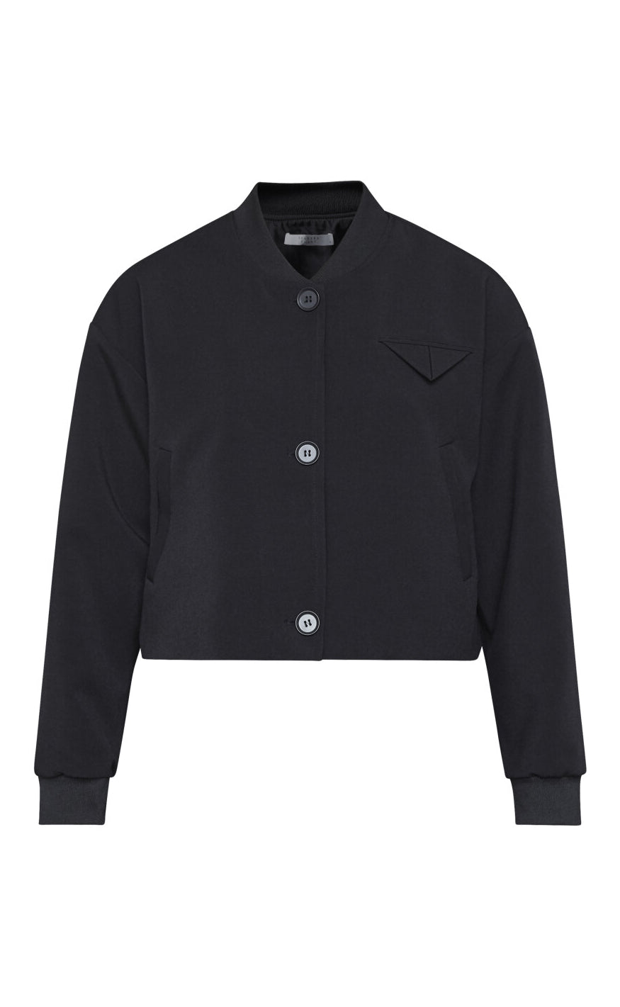 Jakken har en knaplukning foran samt en brystlomme med klap og en sidelomme.