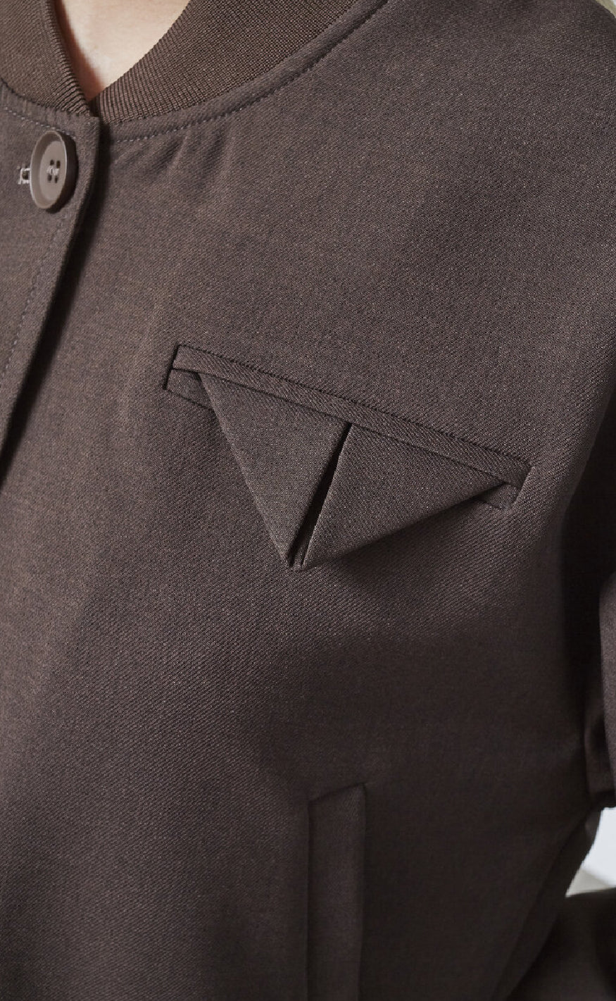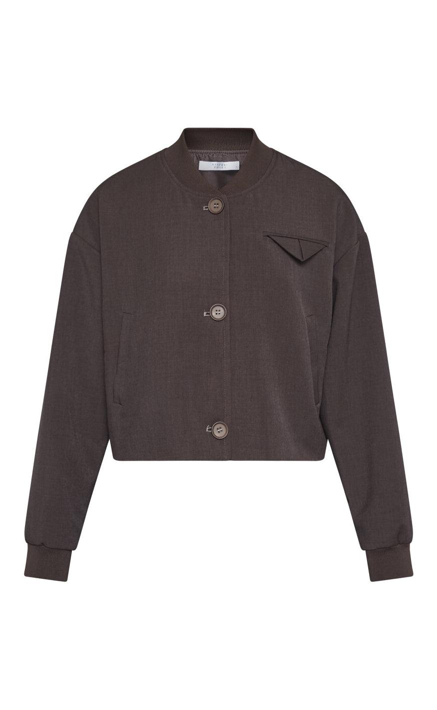 Jakken har en knaplukning foran samt en brystlomme med klap og en sidelomme.