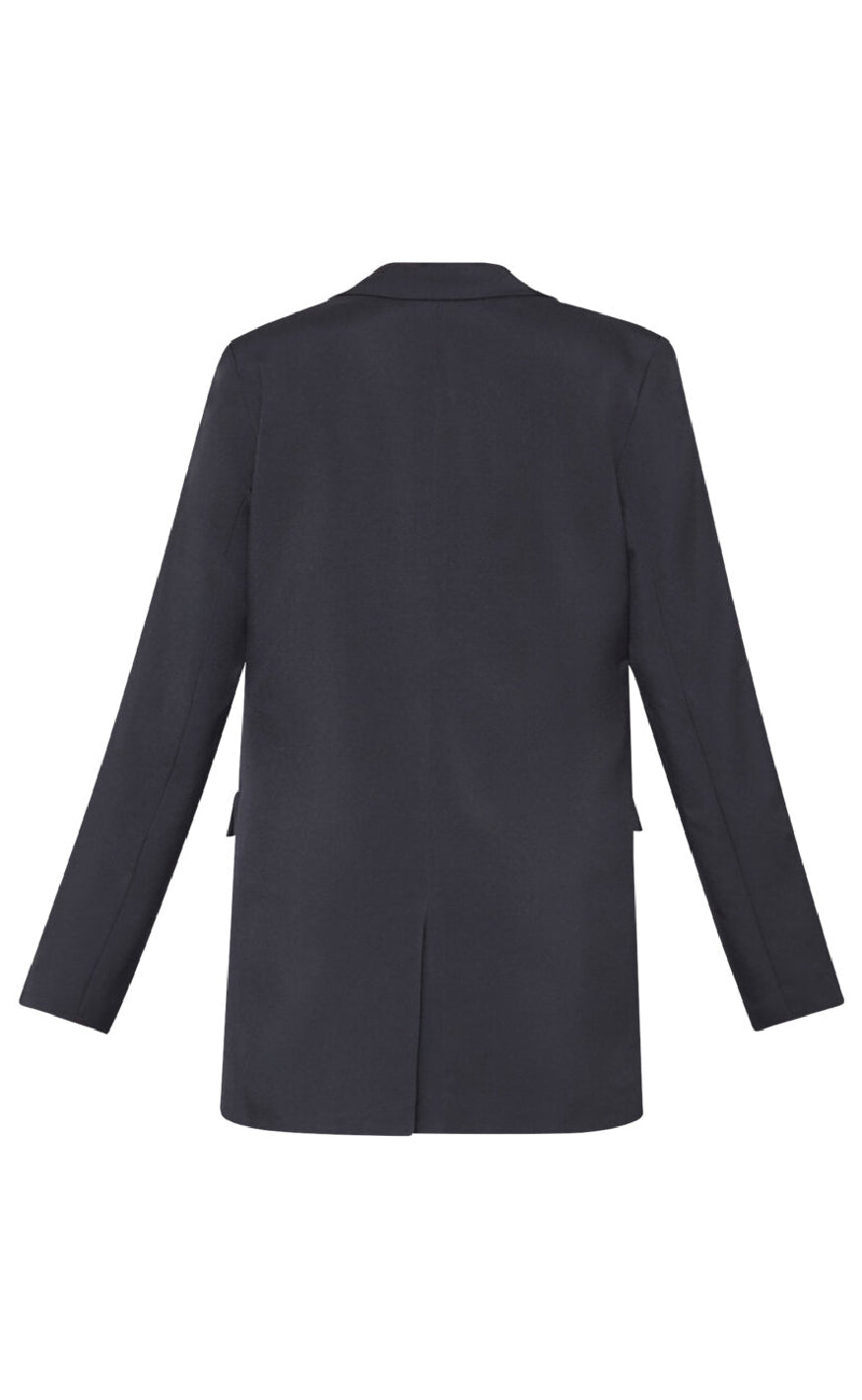 Blazeren er med reverskrave, knaplukning foran og tre pynteknapper på ærmerne og to lommer foran.