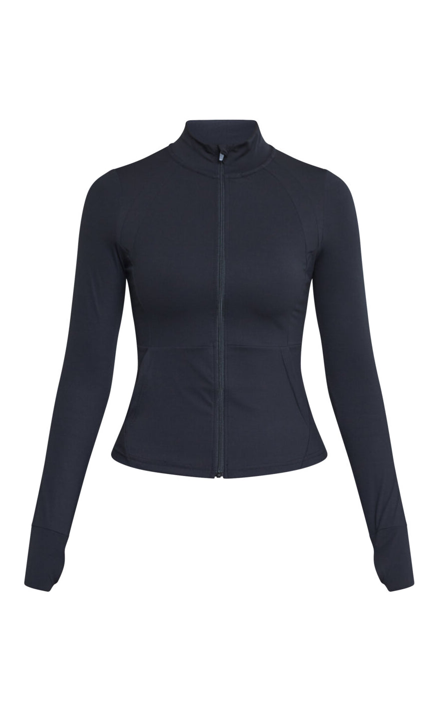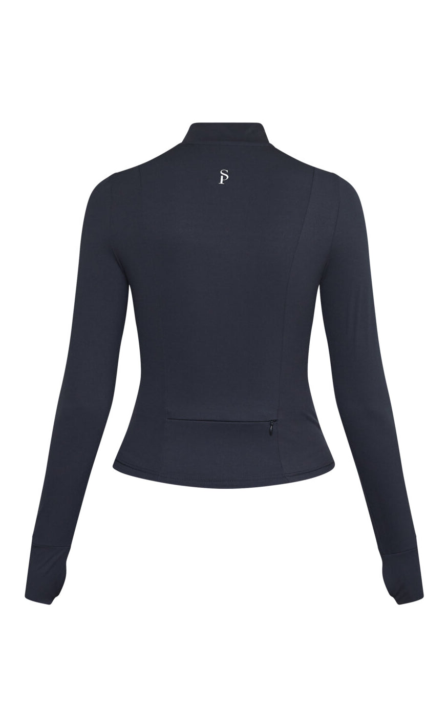 Den er designet med lynlås og praktiske lommer i et blødt, strækbart materiale, der sikrer komfort hele dagen.