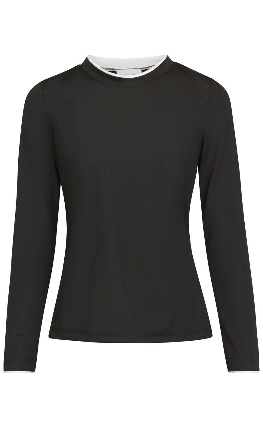 Bluse fra Sisters Point med en fin kontrastkant i hvid ved halsudskæringen.