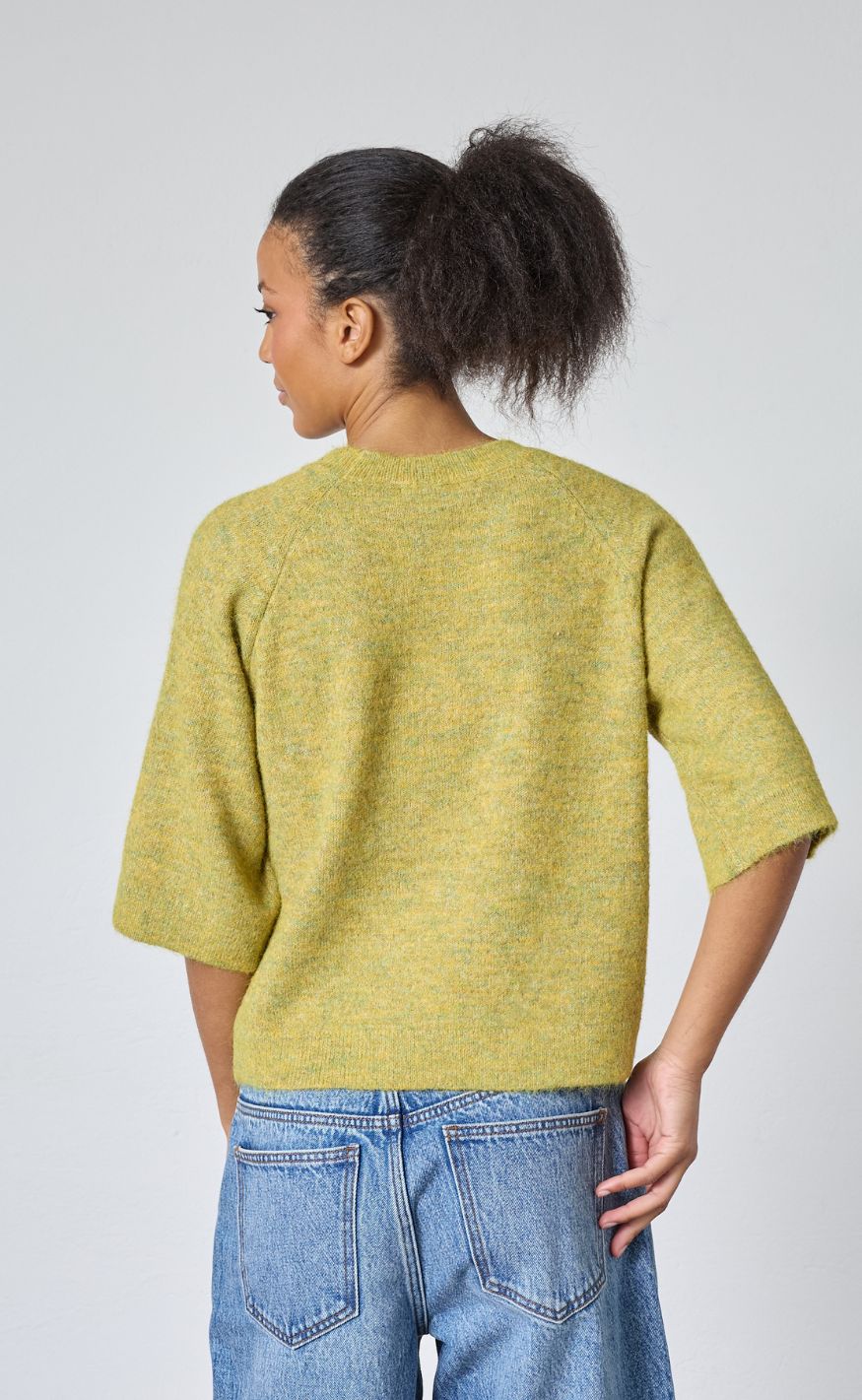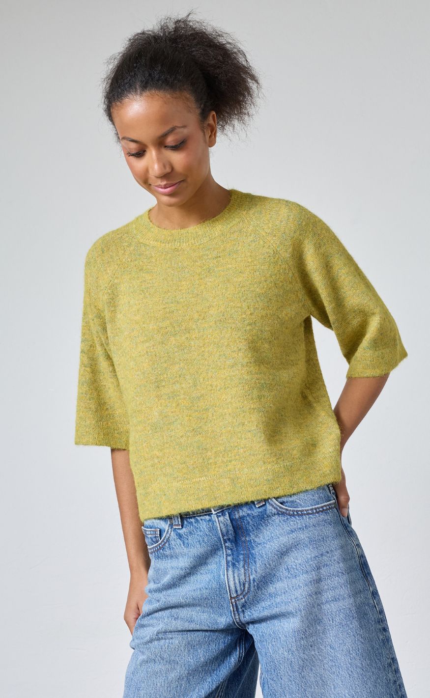 Striktrøjen har korte ærmer, med en rundhals og afslappet form.