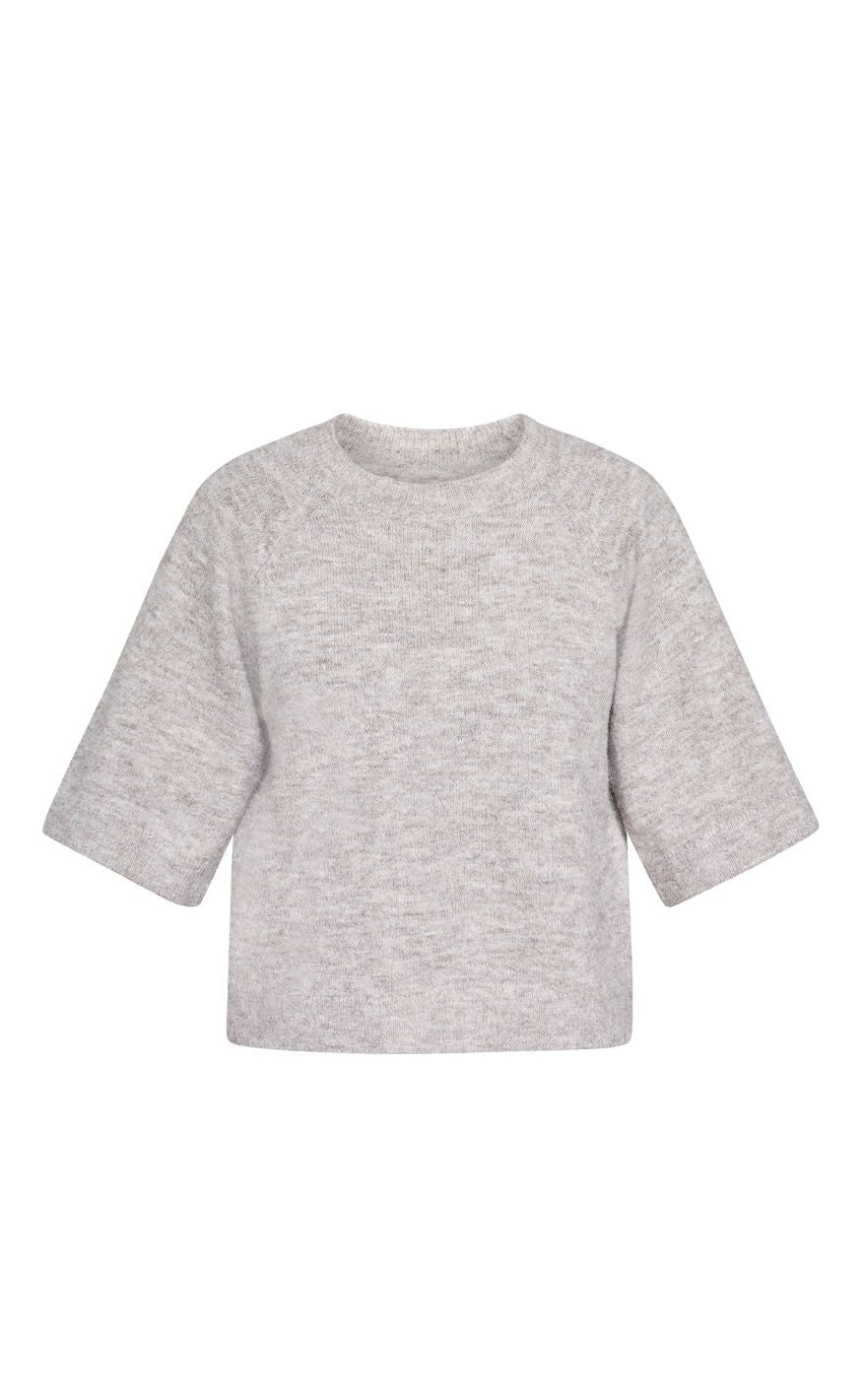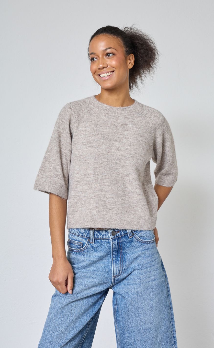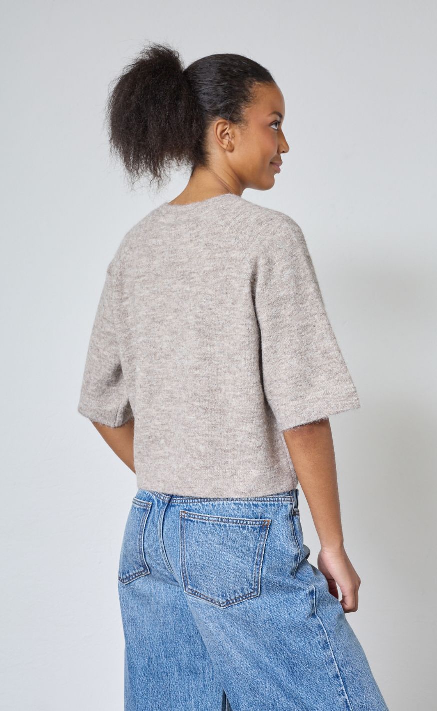 Striktrøjen har korte ærmer, med en rundhals og afslappet form.