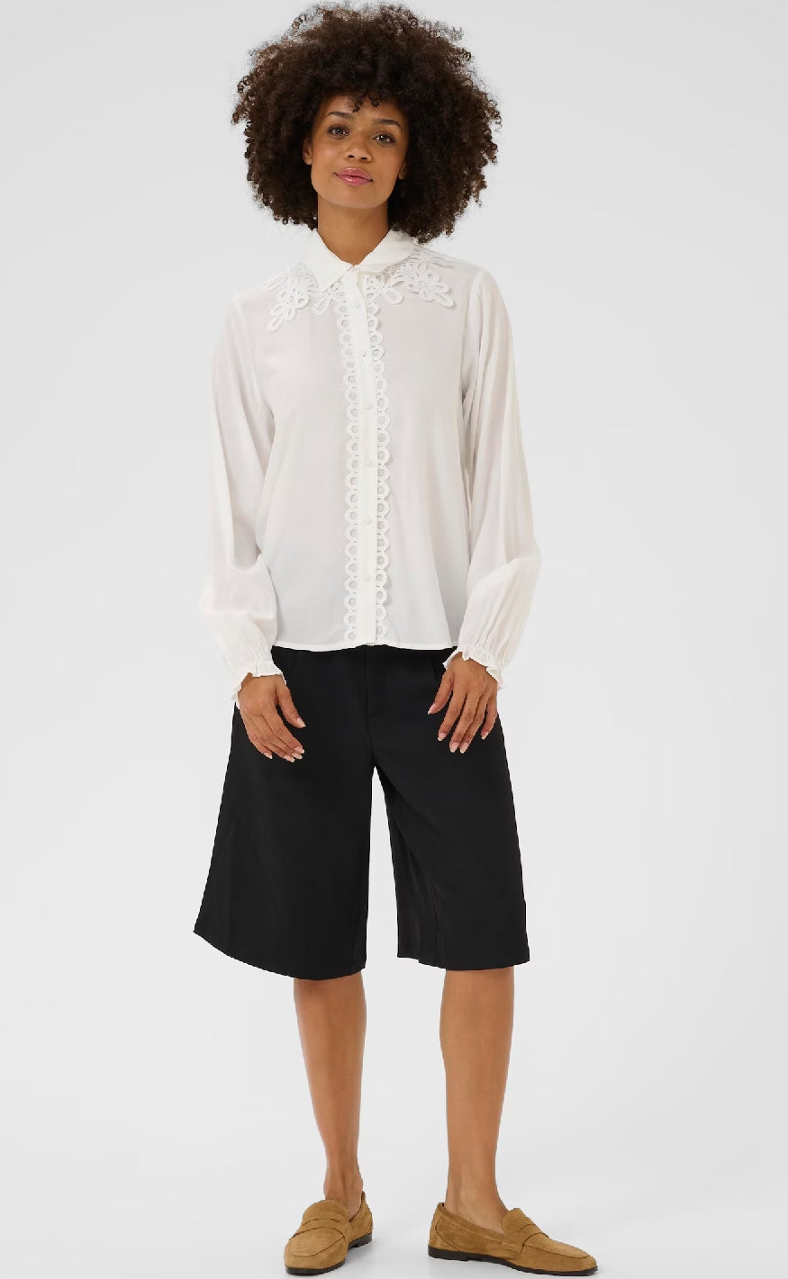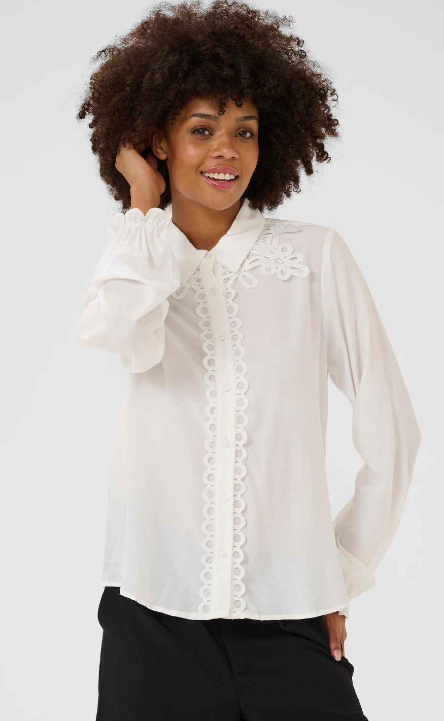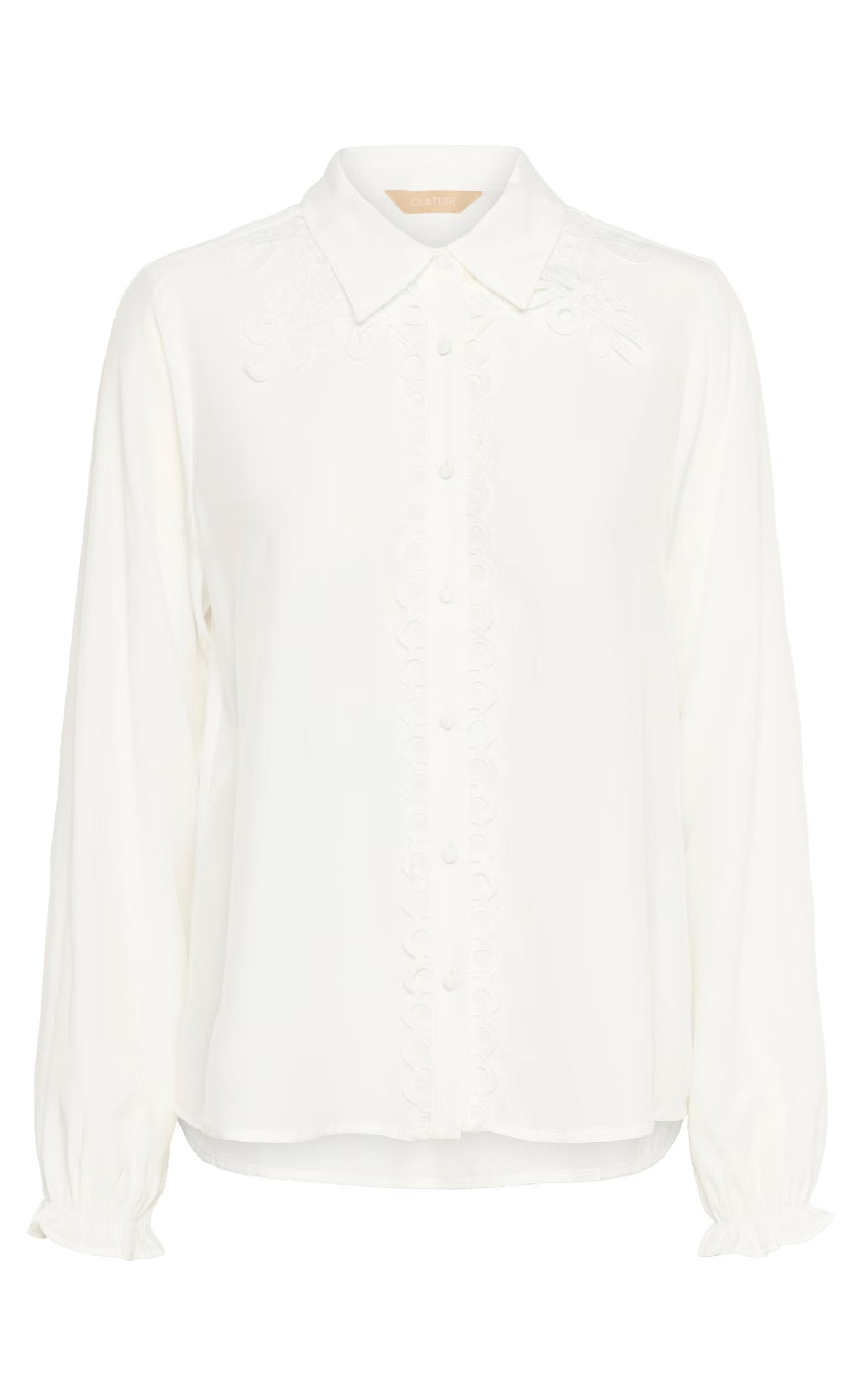 Flot skjorte fra Culture med en afslappet pasform og flot knaplukning, fremhævet af broderi langs krave og stolpe.