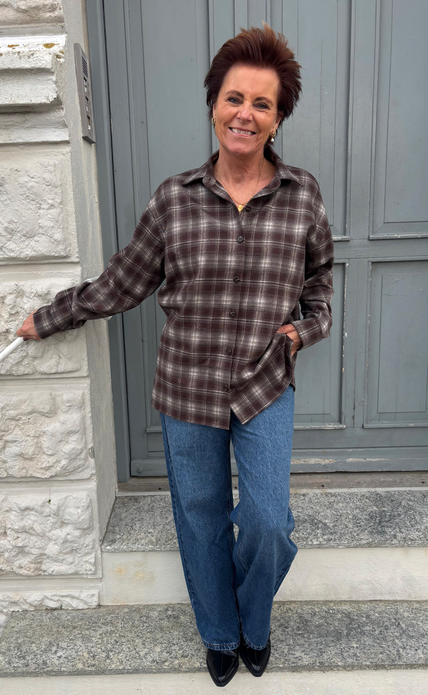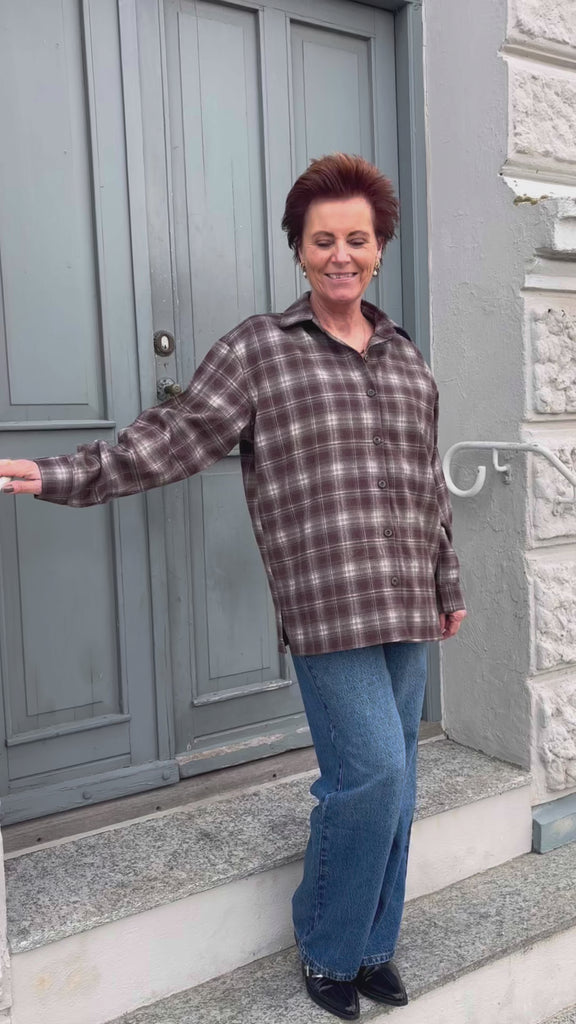Flot skjorte fra Say INA Copenhagen med det populære skovmandsskjorte-look i brune nuancer.