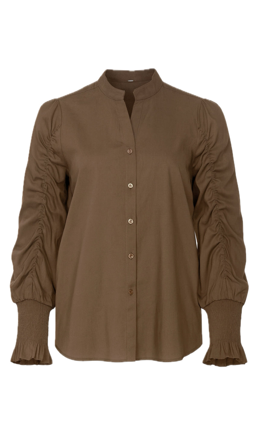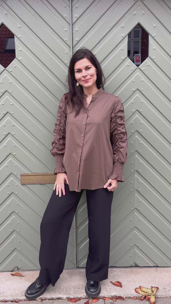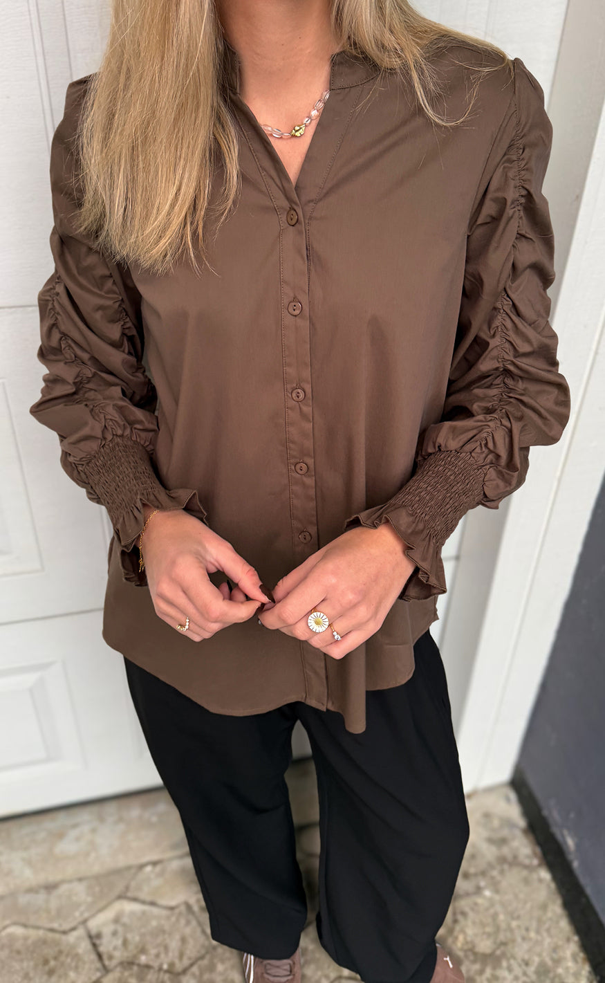 Smart skjorte fra Say INA Copenhagen i brun med så mange flotte detaljer.