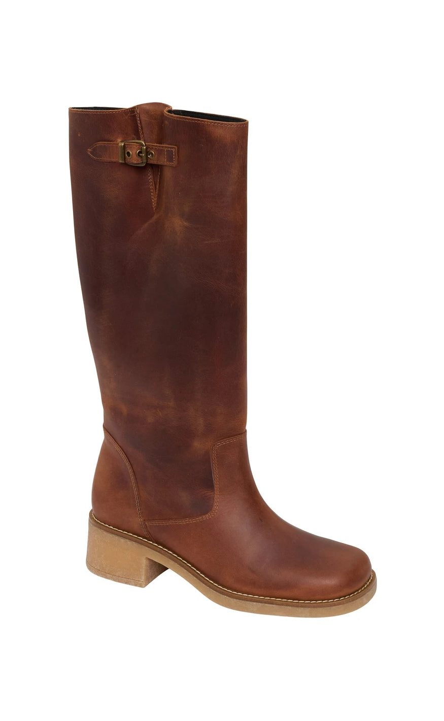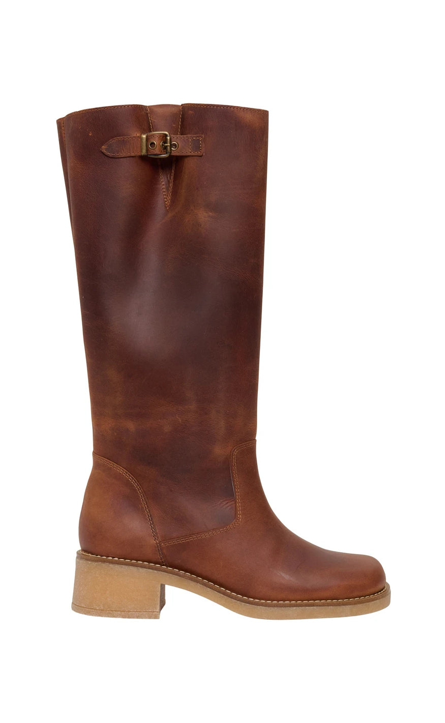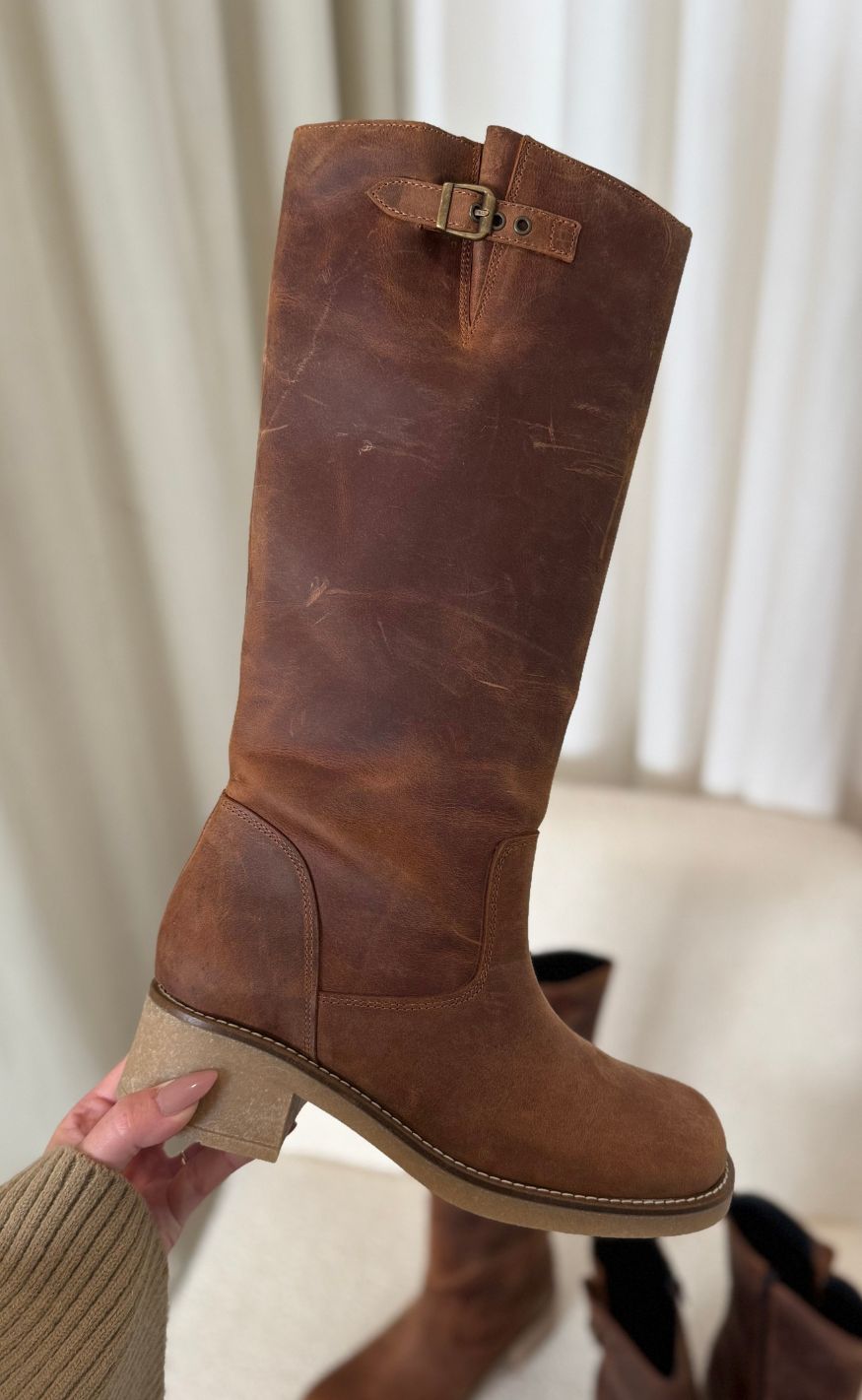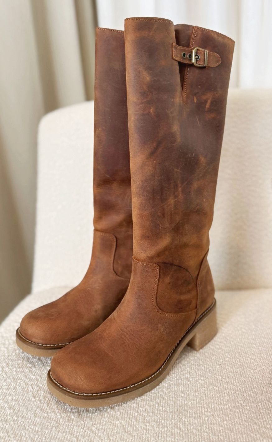 Flotte, brune lang støvle fra Tim & Simonsen i et slidt / trashy look - super moderne støvle som lige rammer ned i tidens trend.