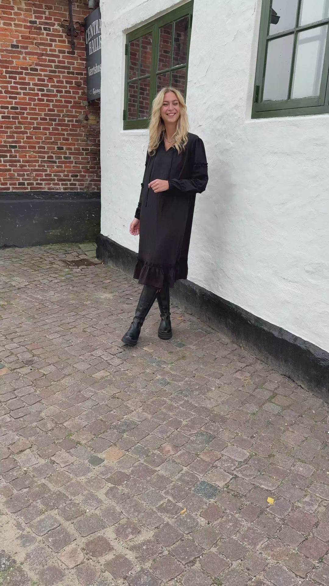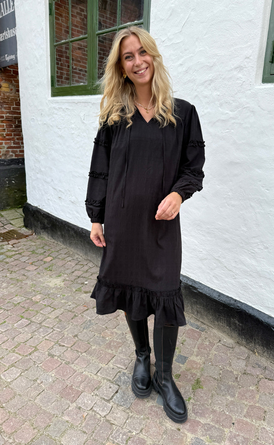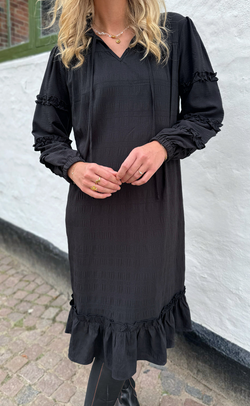 Smuk kjole fra Say INA Copenhagen i sort en flot struktur i stoffet og så mange andre fine detaljer.