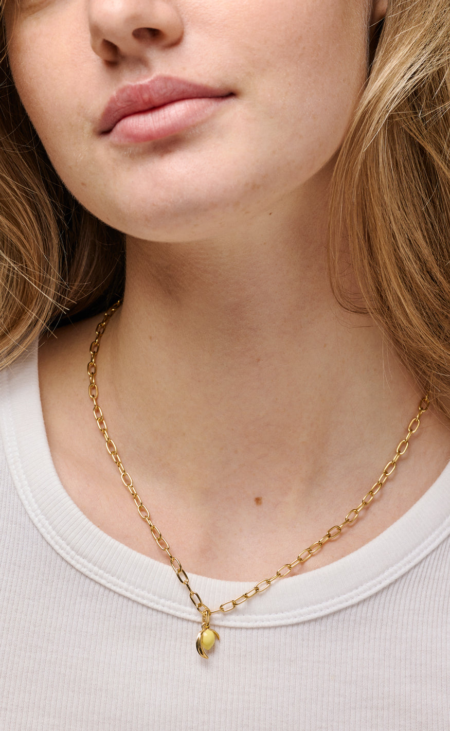 Sødt vedhæng fra ENAMEL Copenhagen i guld, formet som en citron.