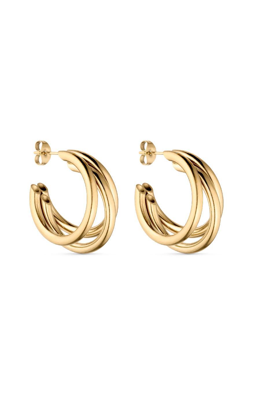 Flotte hoops fra Smykkeli Copenhagen i guld med tre sammensatte hoops. Perfekt til både hverdag og fest!