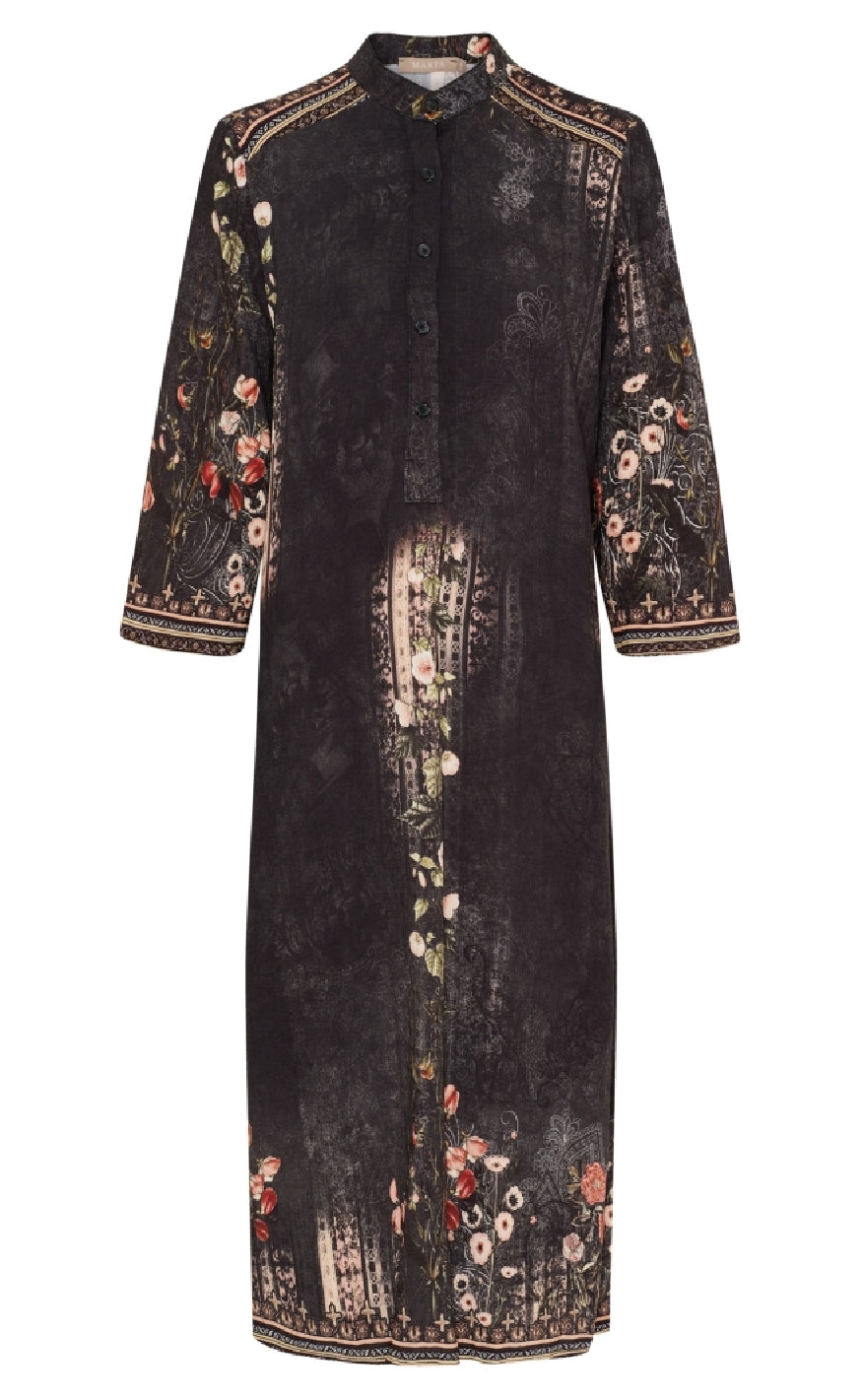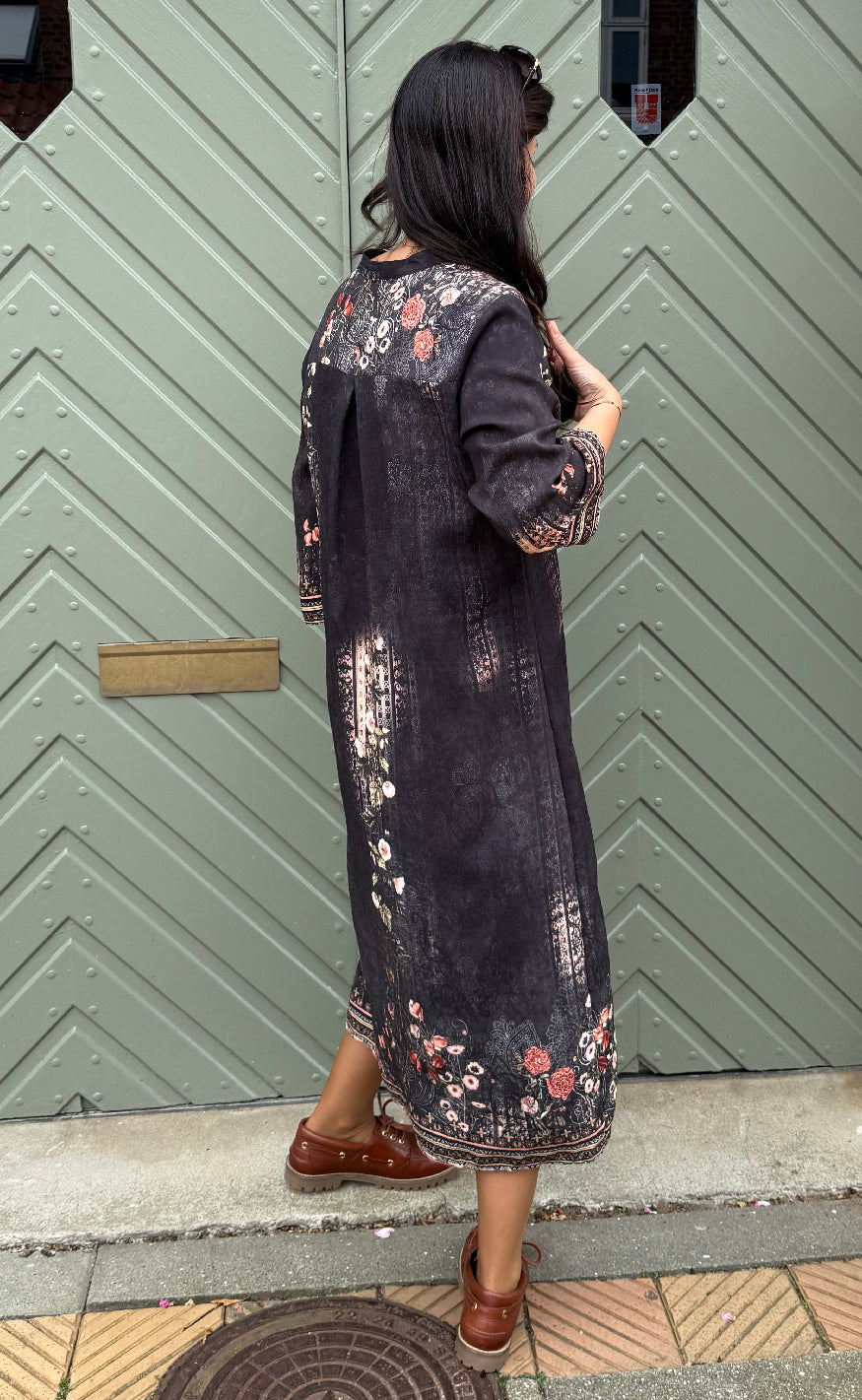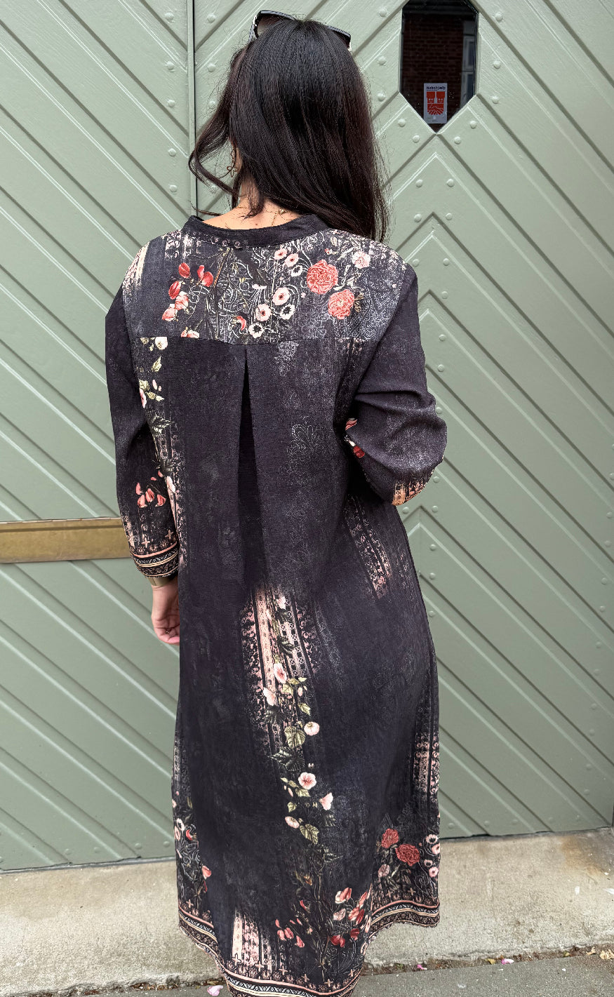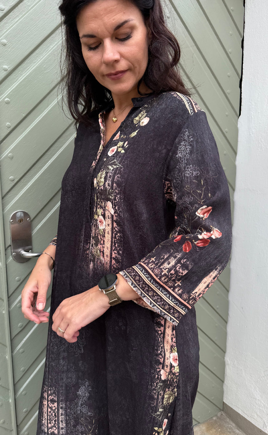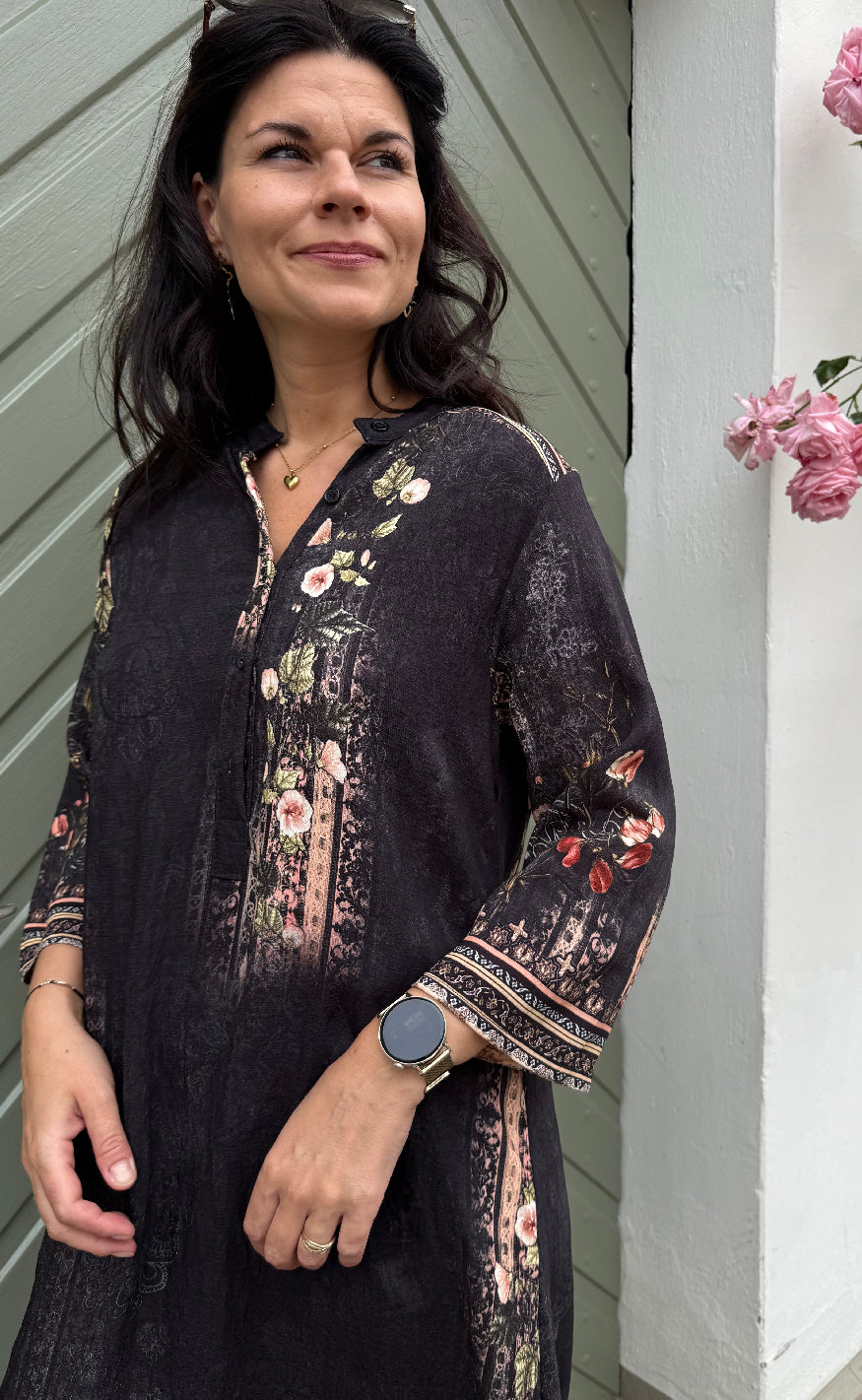 Denne kjole er lang og har lange ærmer, hvilket gør den perfekt til efteråret.