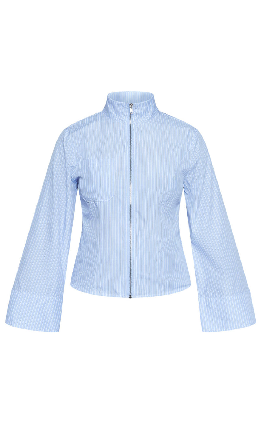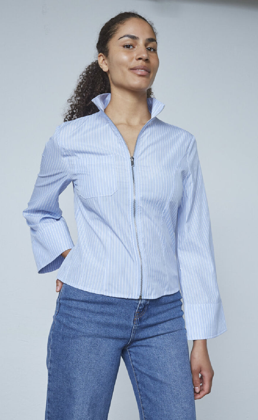 Skjorten lukkes med en lynlås lukning hele vejen ned samt har den lange, let udsvungne ærmer for et elegant touch.