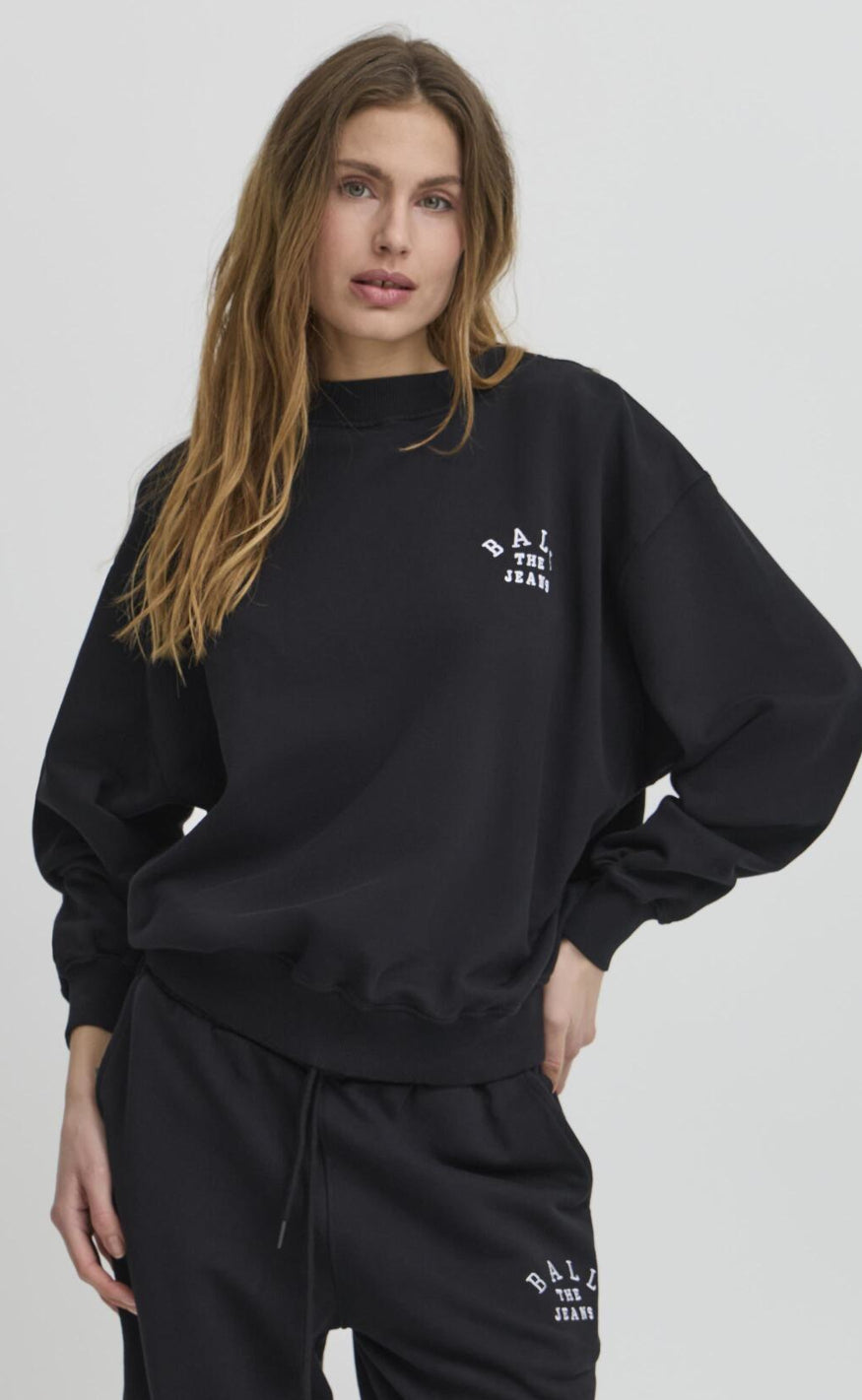 Blød og casual sweatshirt fra BALL Original i en sort nuance med lille logo‑print på brystet.