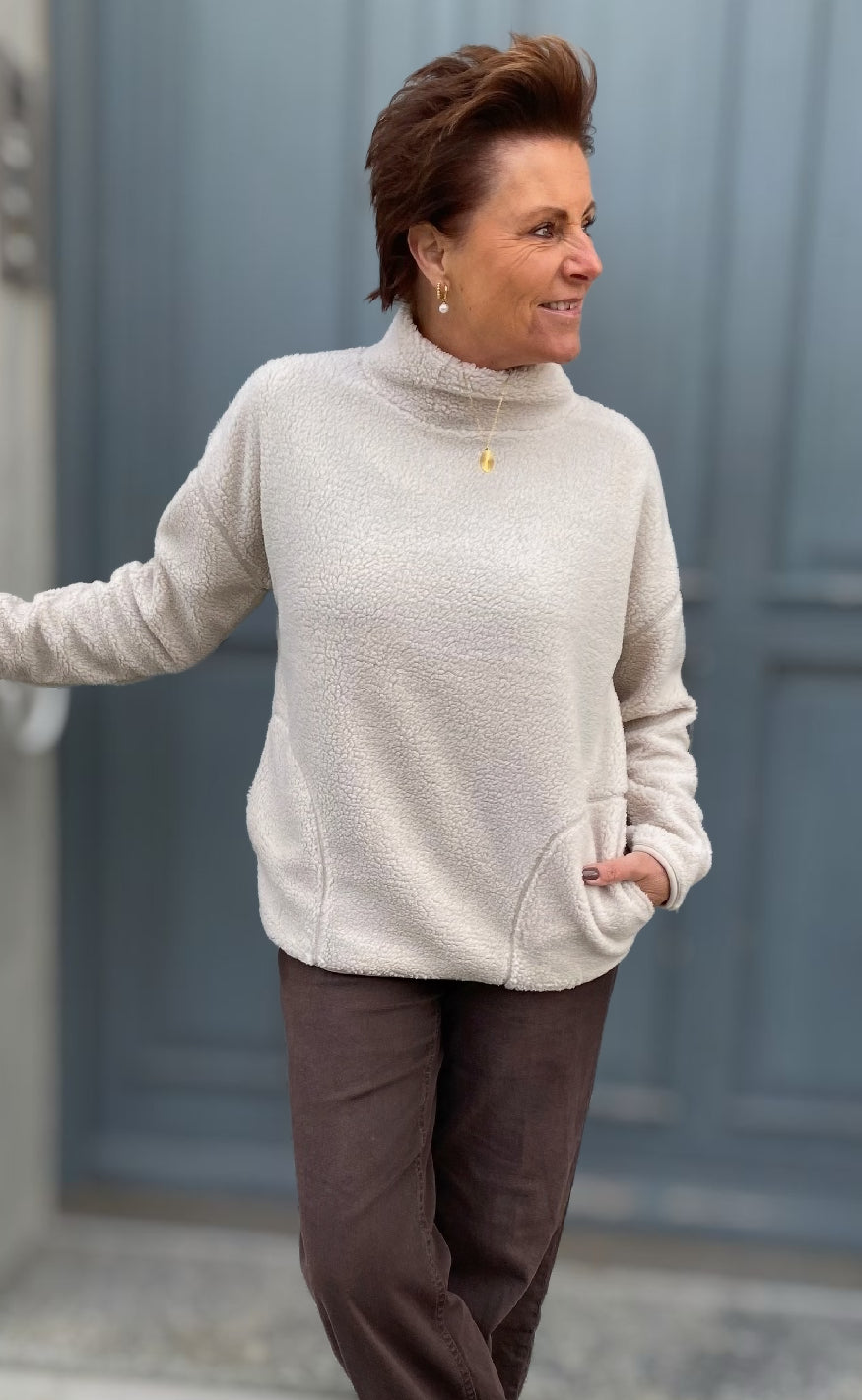 Teddy-sweater fra Freequent med høj hals og afslappet pasform – ideel til et varmt og hyggeligt look.