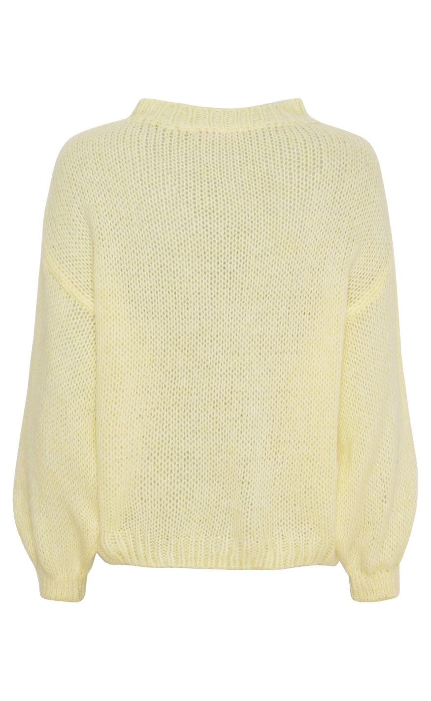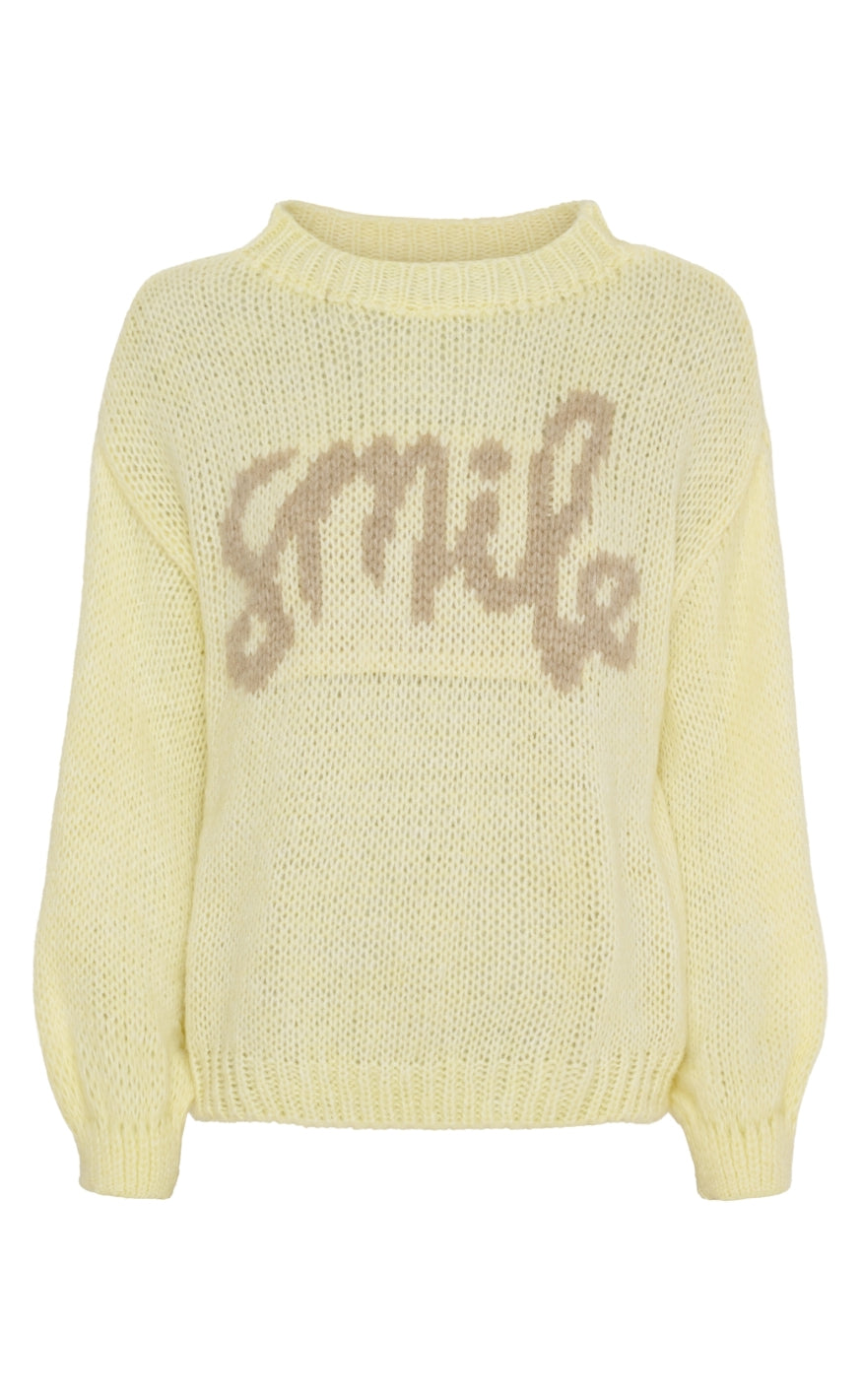 Gul striktrøje med afslappet pasform hvilket giver et varmt og positivt udtryk.