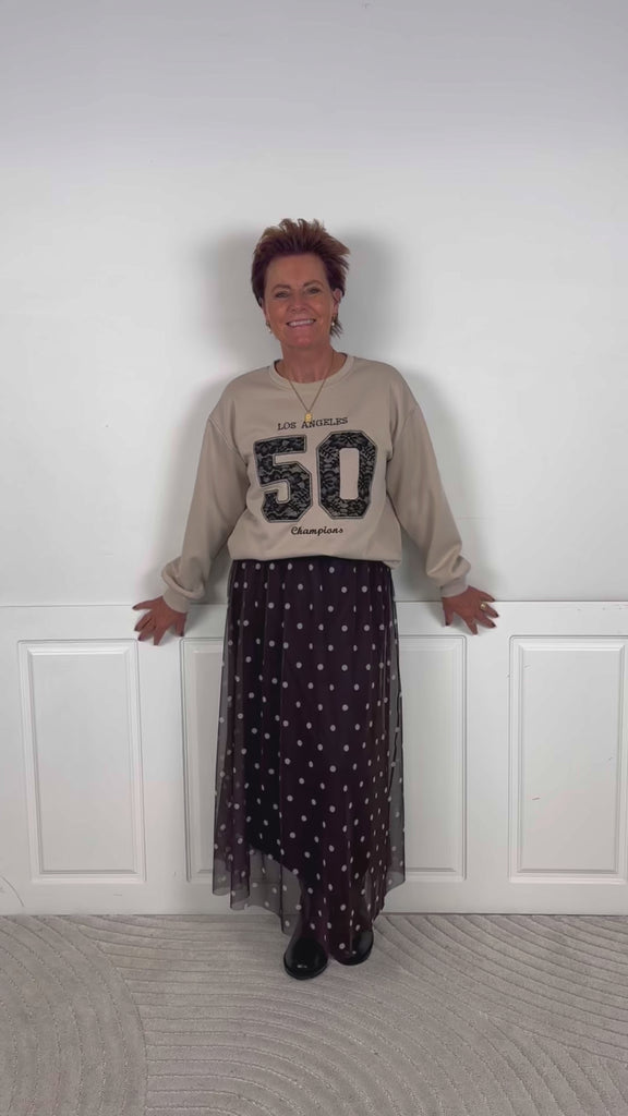Lækker sweatshirt fra Marta Du Chateau i bordeaux med skrift, med blonde.