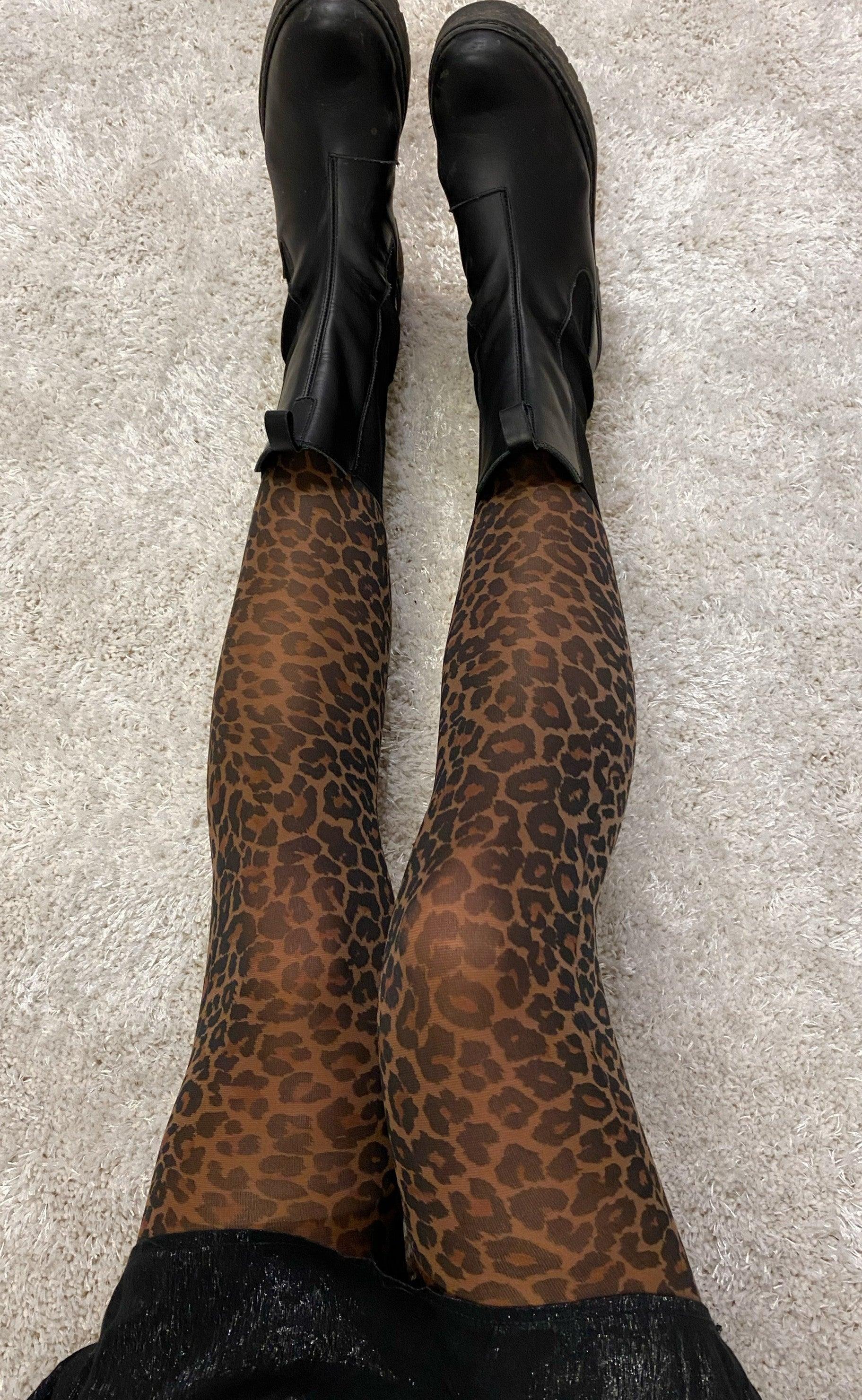 Smarte strømpebukser fra Black Colour i brun med leopardprint.