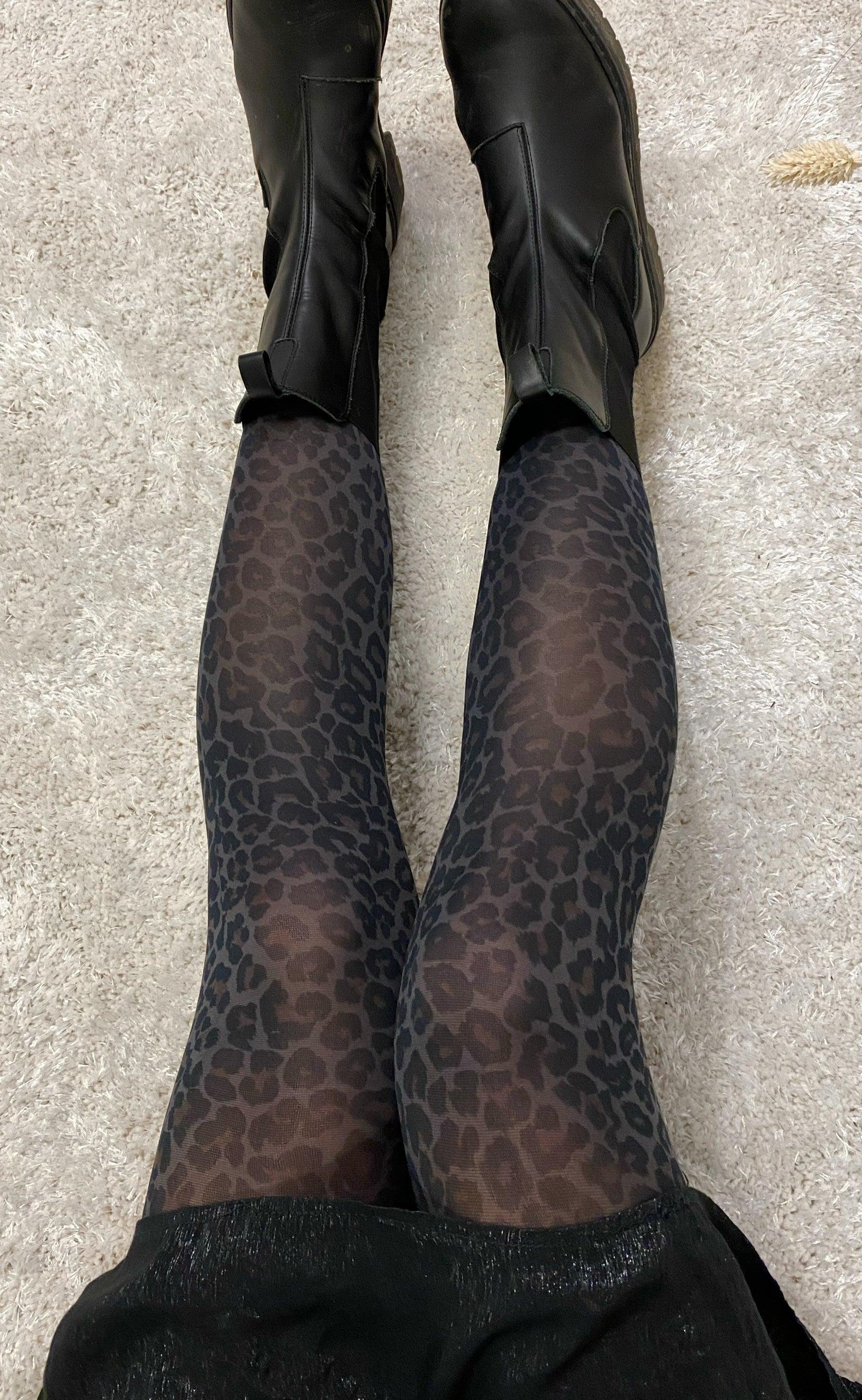 Fine strømpebukser fra Black Colour i grå med leopardprint.