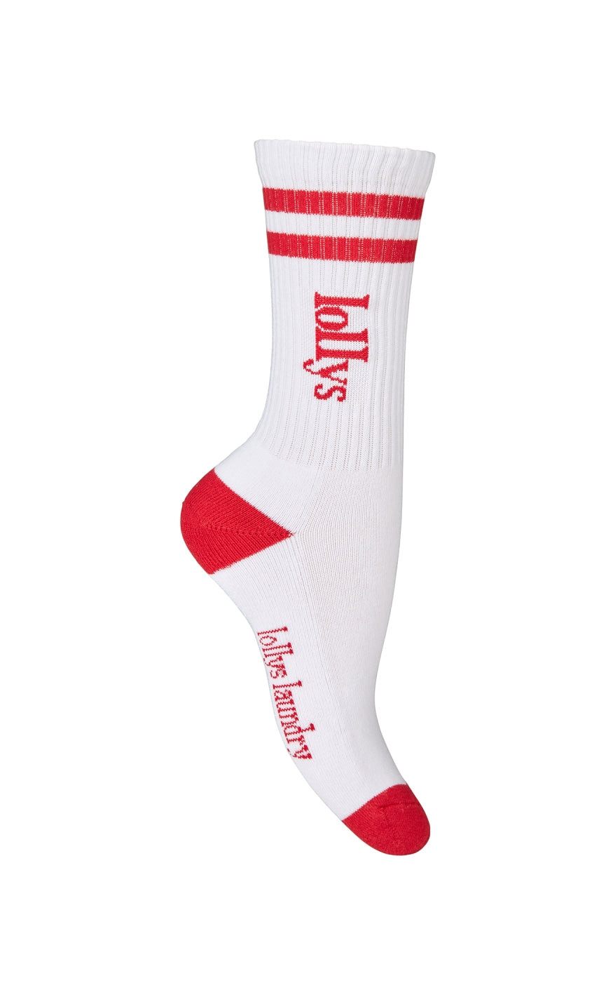 Smarte onesize strømper fra Lollys Laundry med røde detaljer.