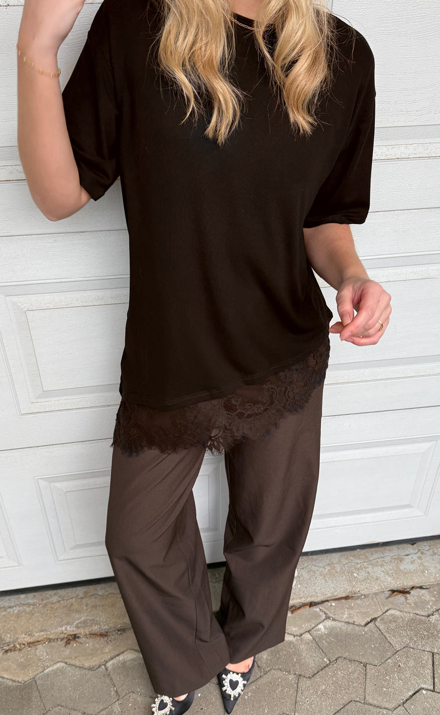 Say INA Copenhagen T-Shirt - Larisa Lace Asymmetric - Dark Brown