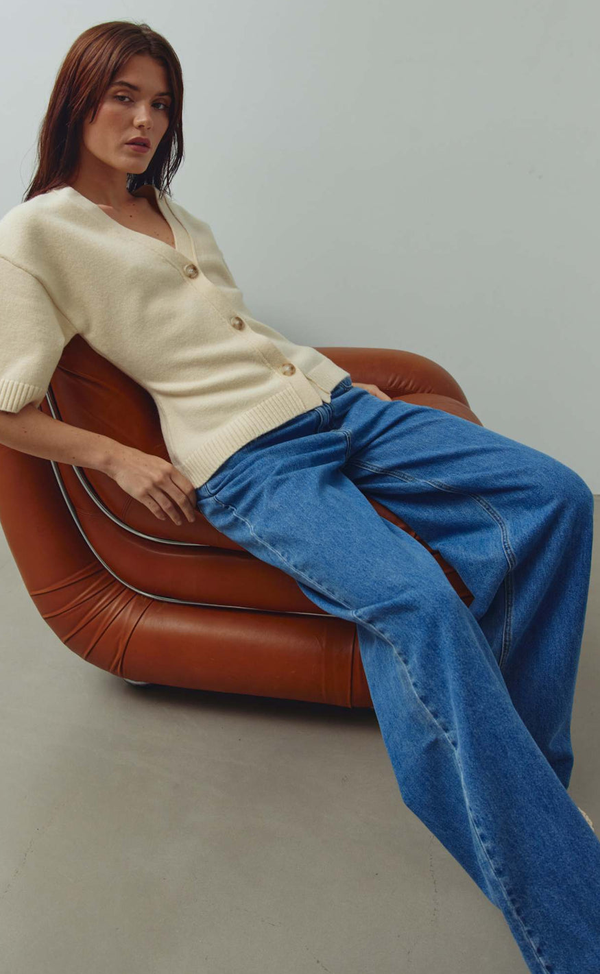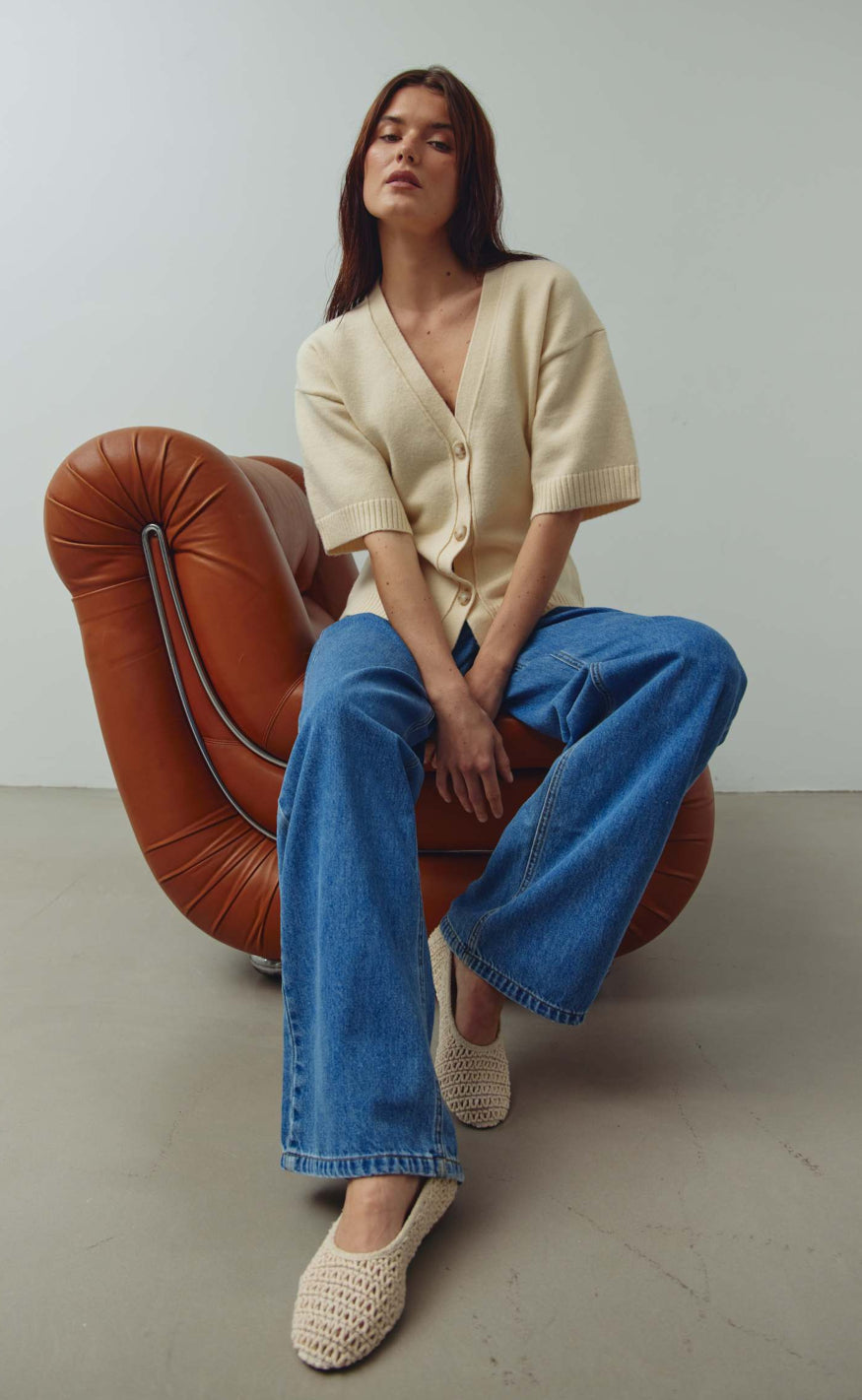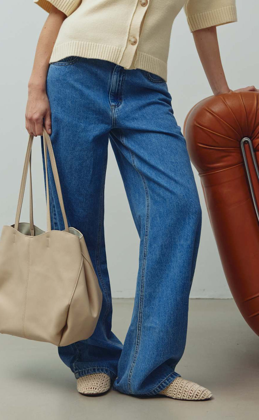 Bukserne har lige ben og et tidløst fem-lomme design med knap- og lynlåslukning.