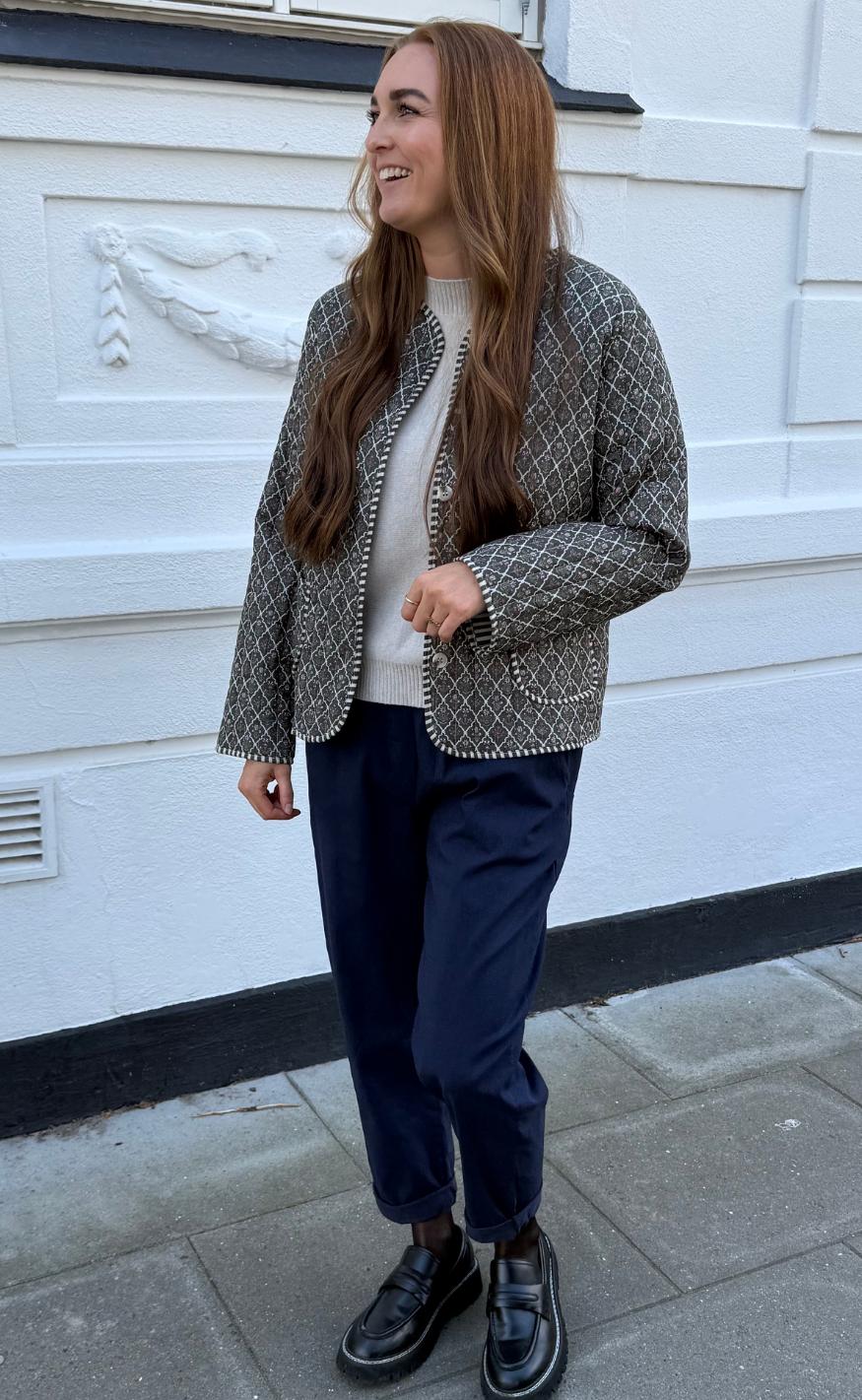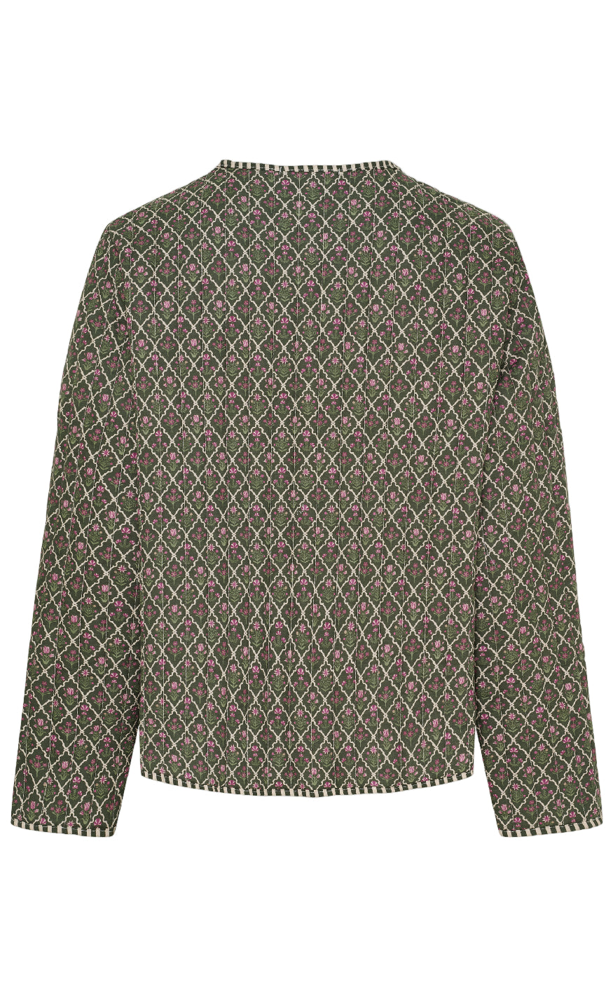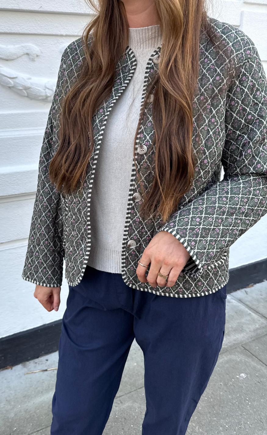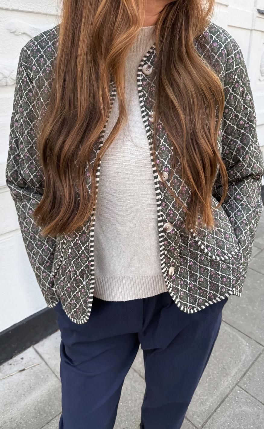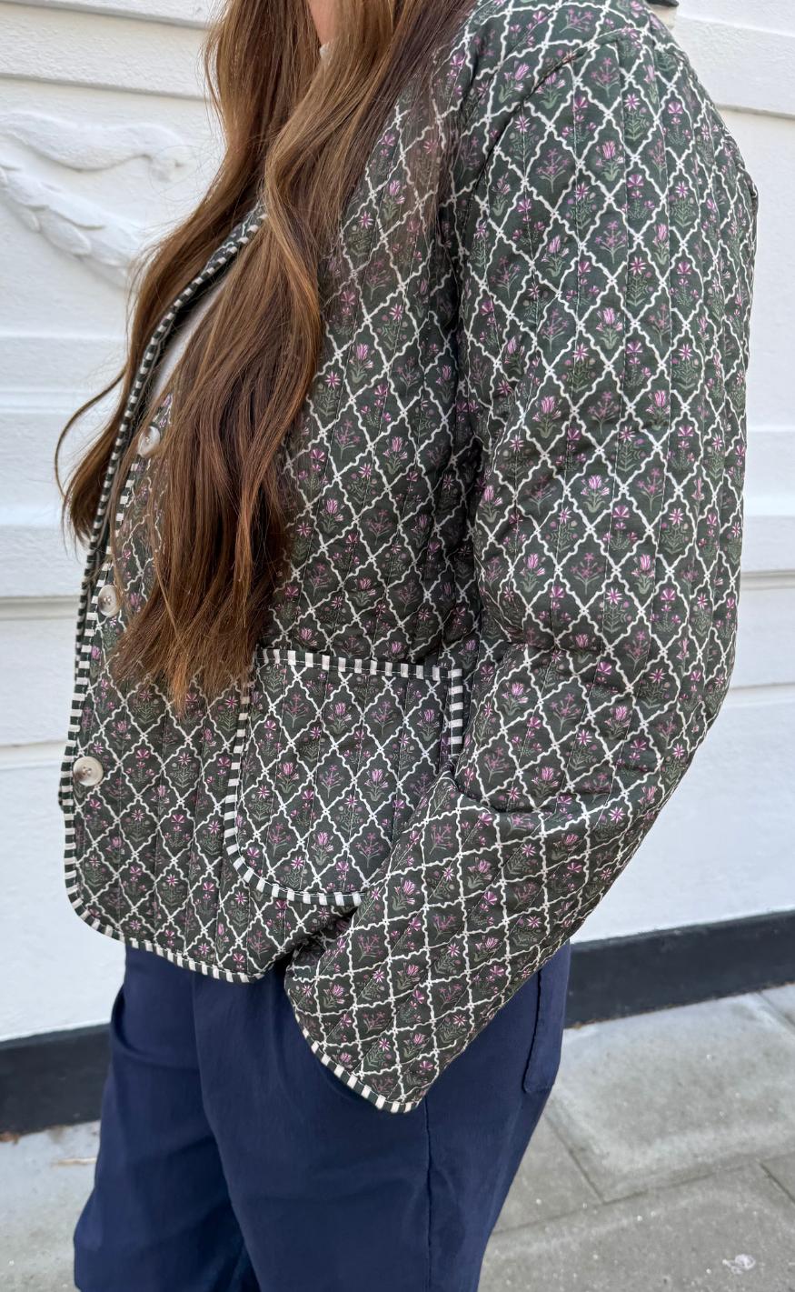 Pæn quiltet jakke i et militær print.