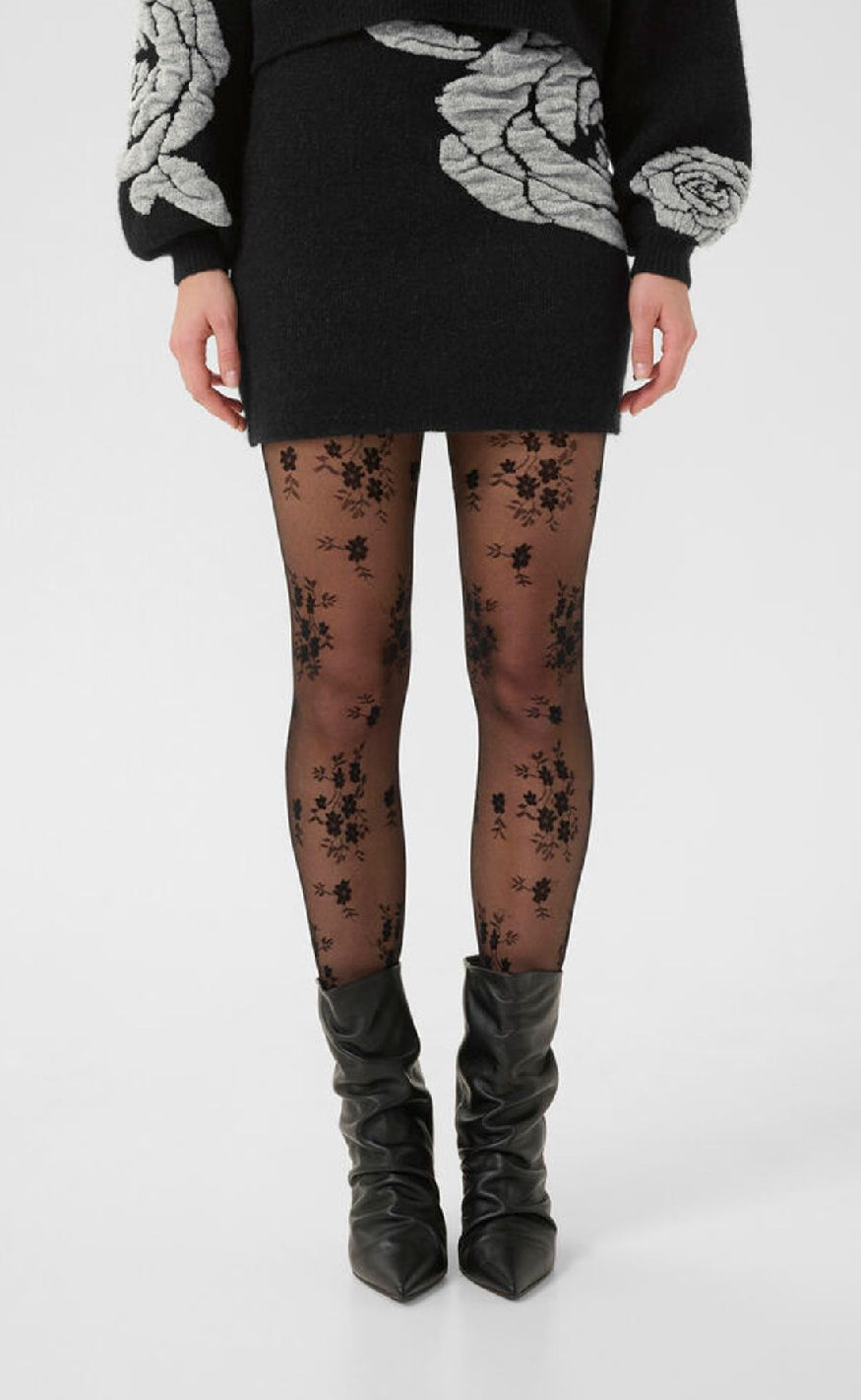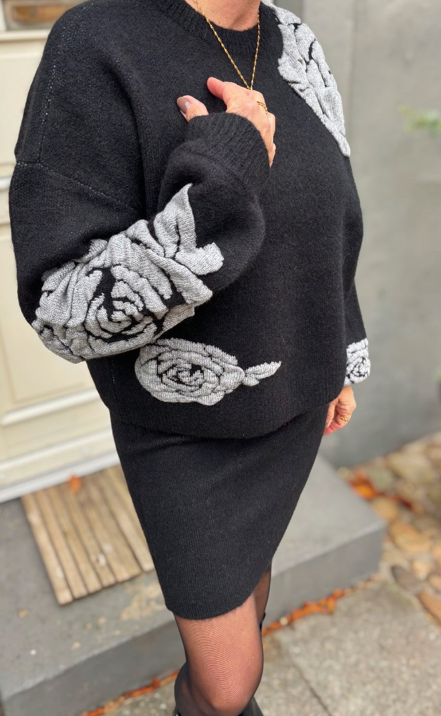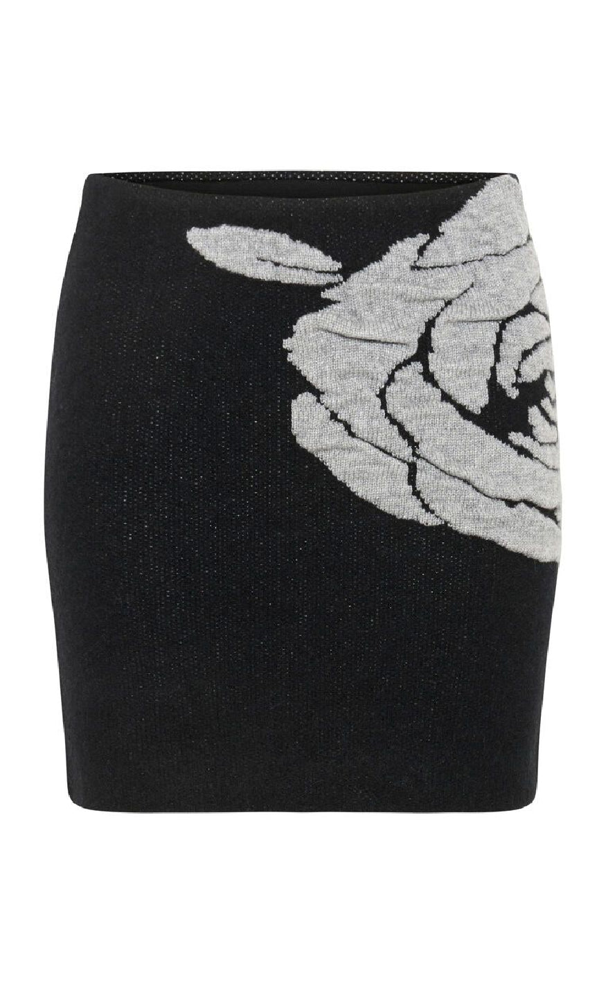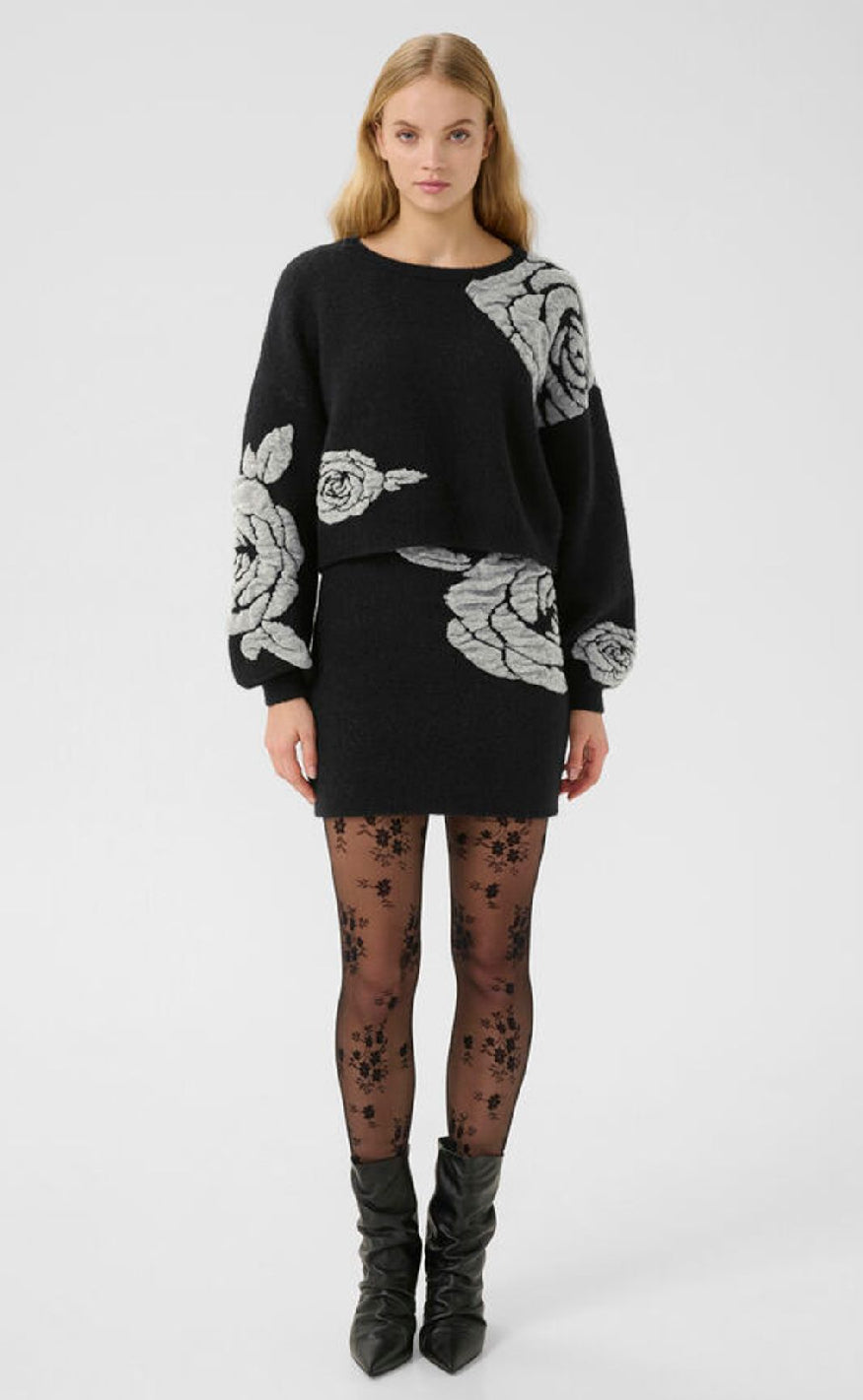Fin strik nederdel fra Gestuz i sort med en hvid blomster detalje.