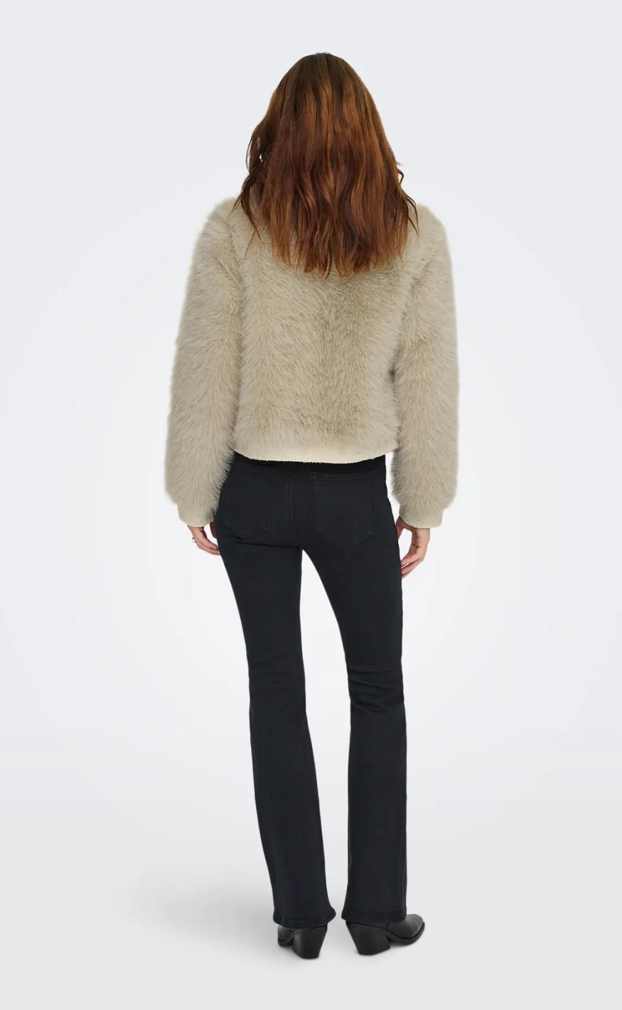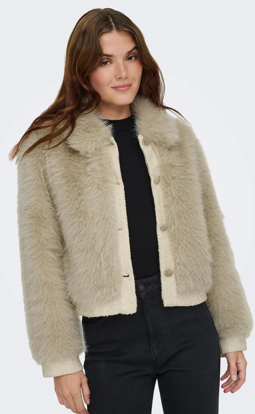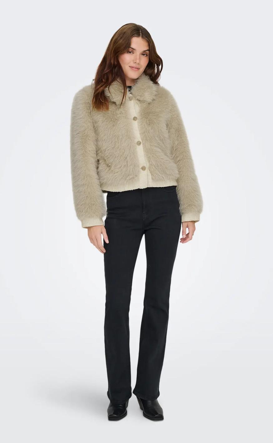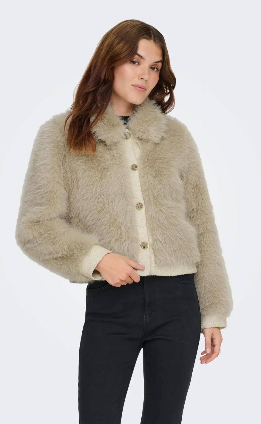 Denne jakke har rund hals, lange ærmer, knaplukning foran og praktiske sidelommer – et klassisk valg til de kølige dage.