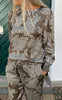 Blusen har lange ærmer med smock ved håndled, en rund halsudskæring og kan åbnes i nakken med en knap.