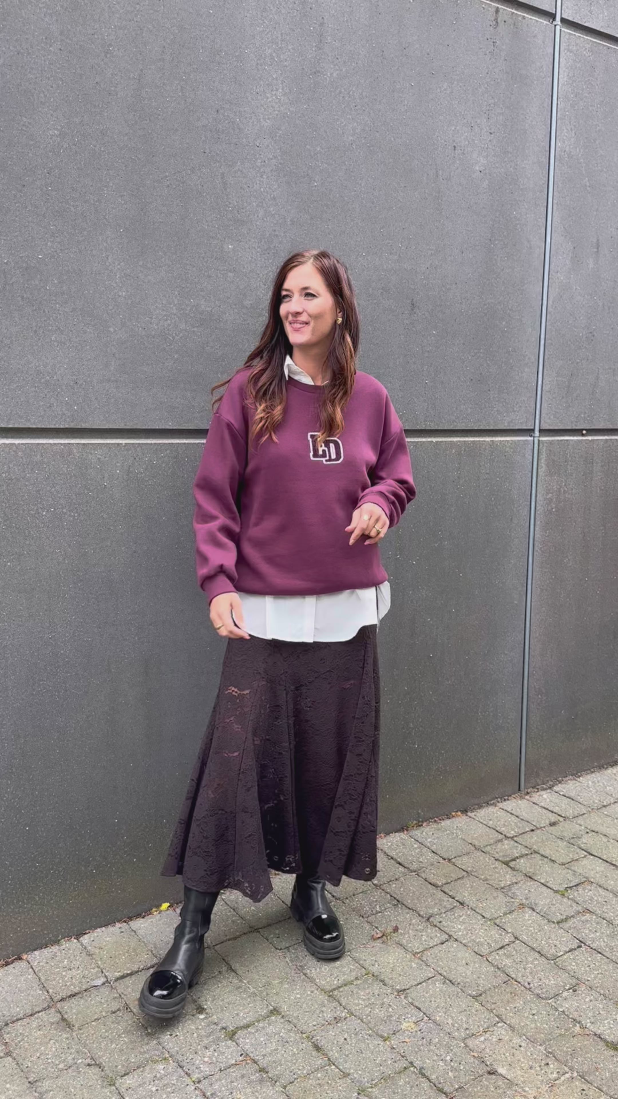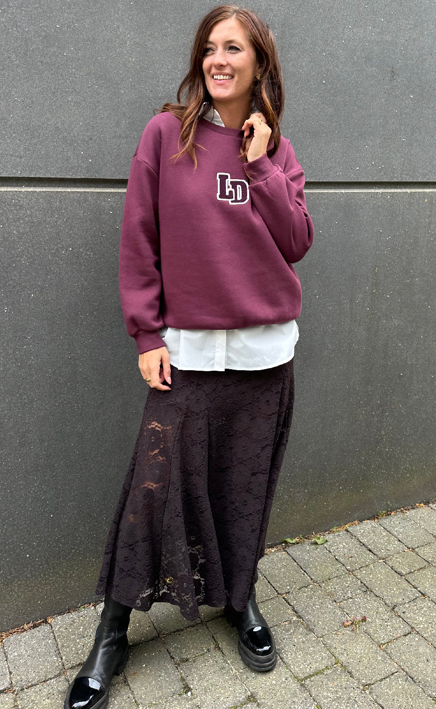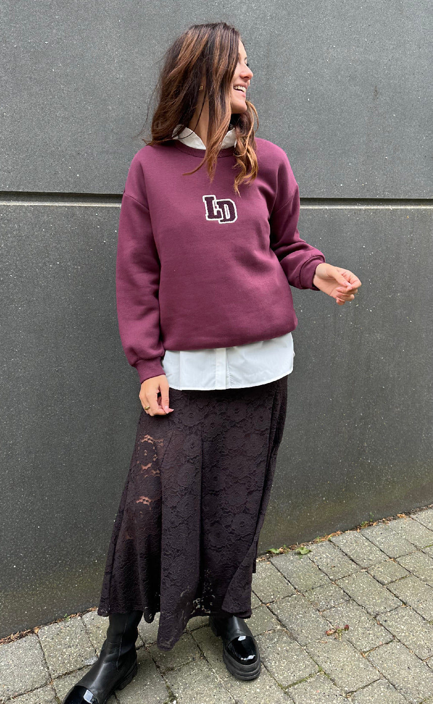Dejlig sweatshirt fra Love & Divine, den er i den smukkeste røde farve og har initialer på fronten.