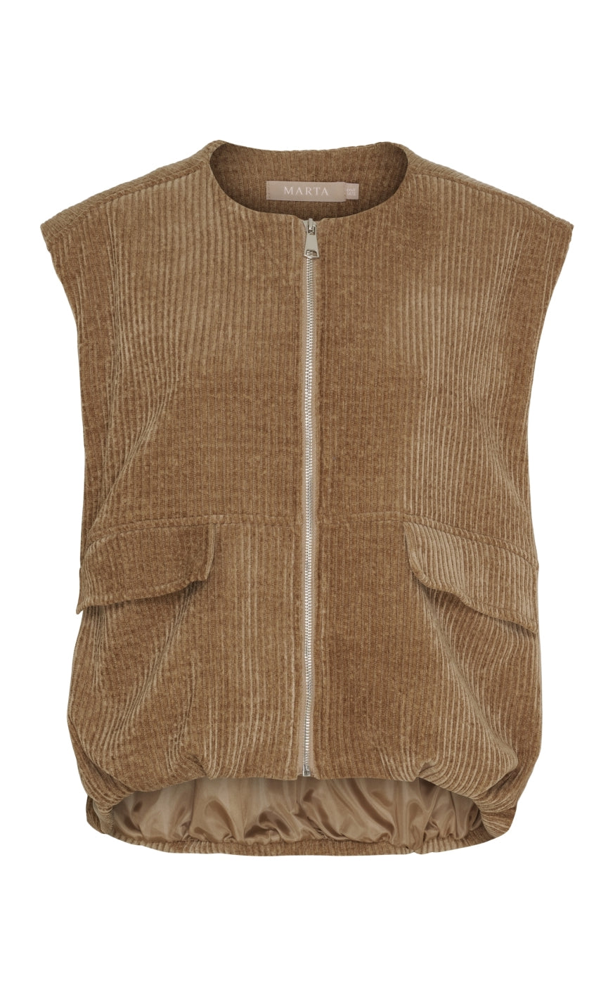Brun vest fra Marta Du Chateau i blød fløjl med ribstruktur.