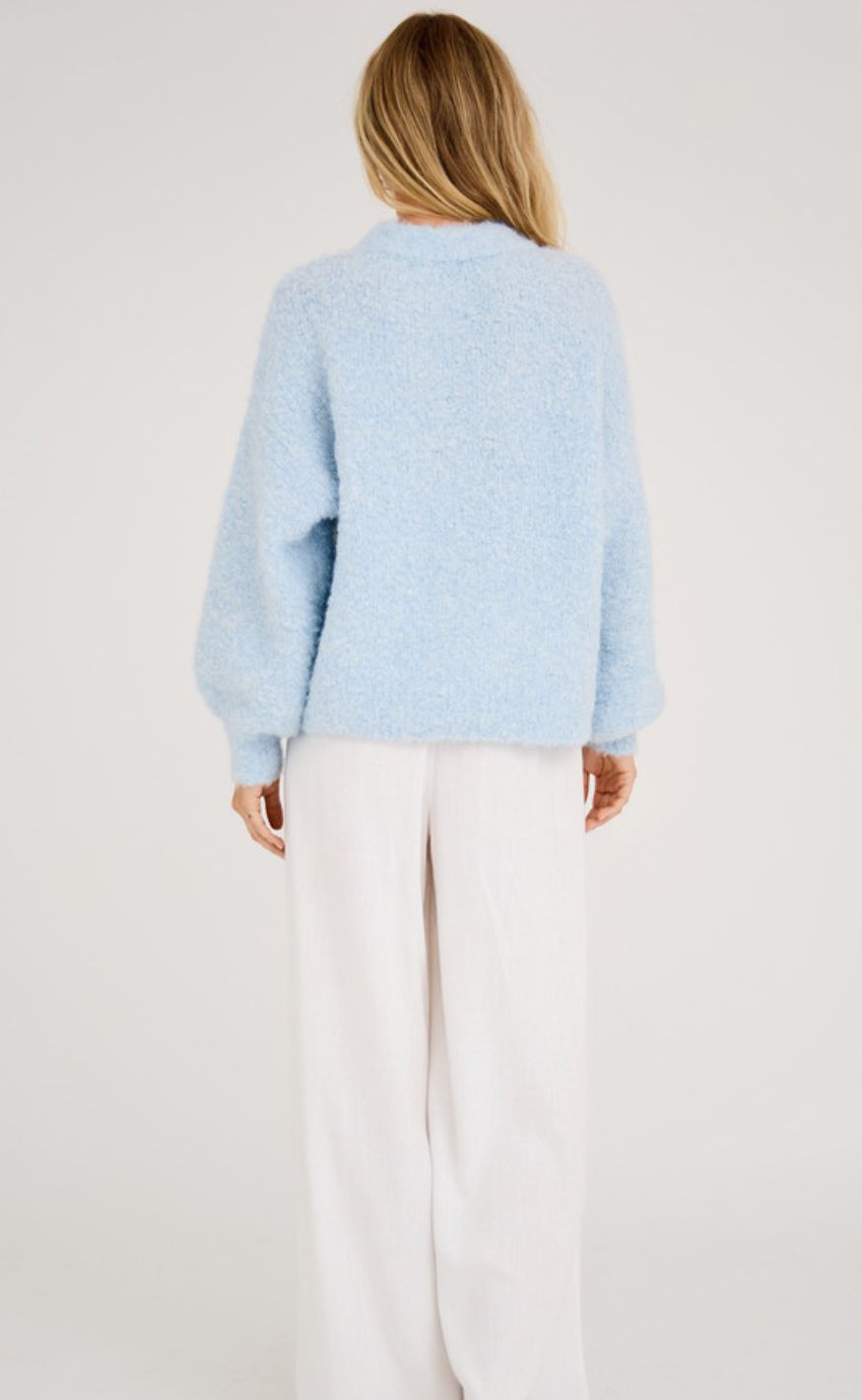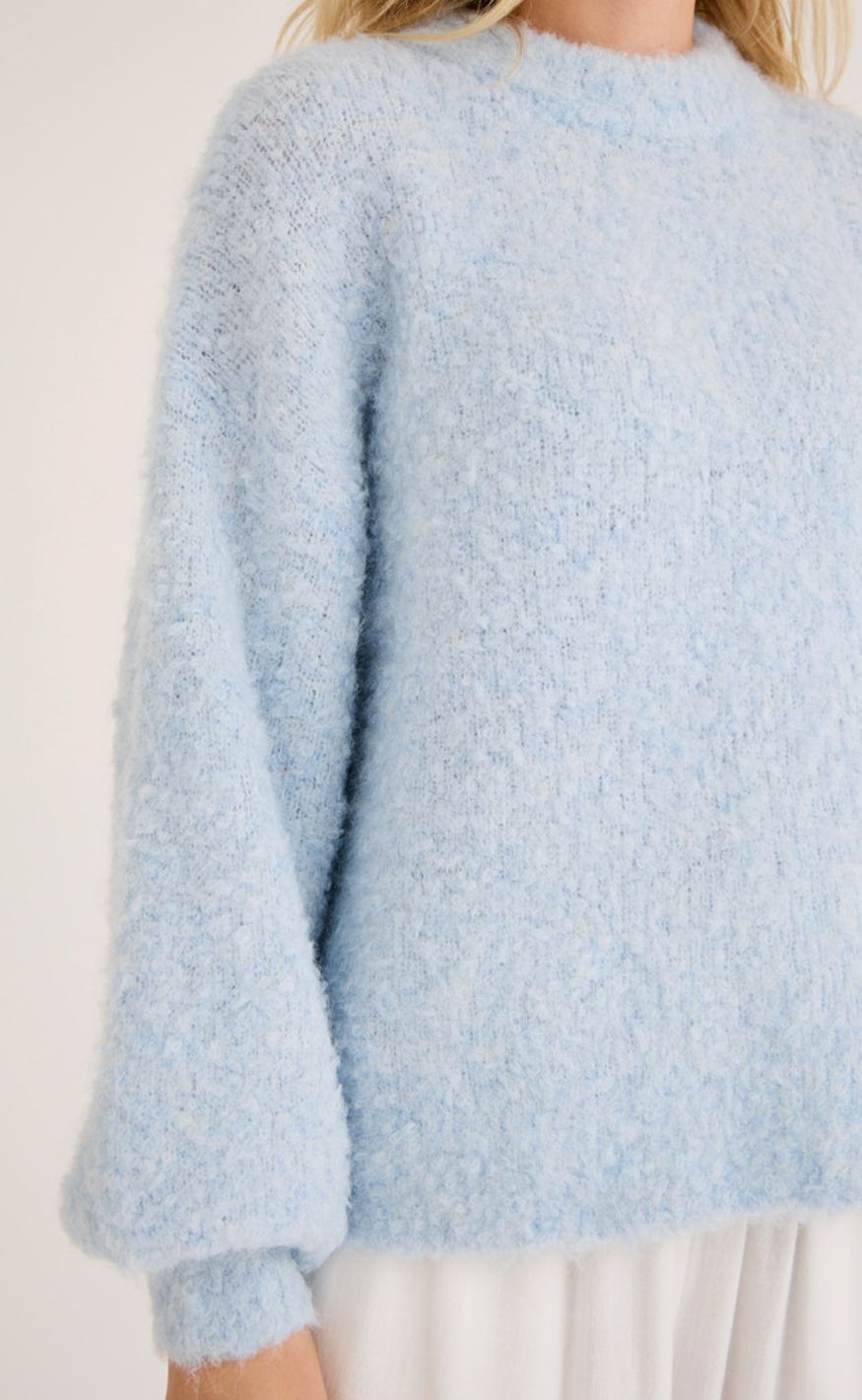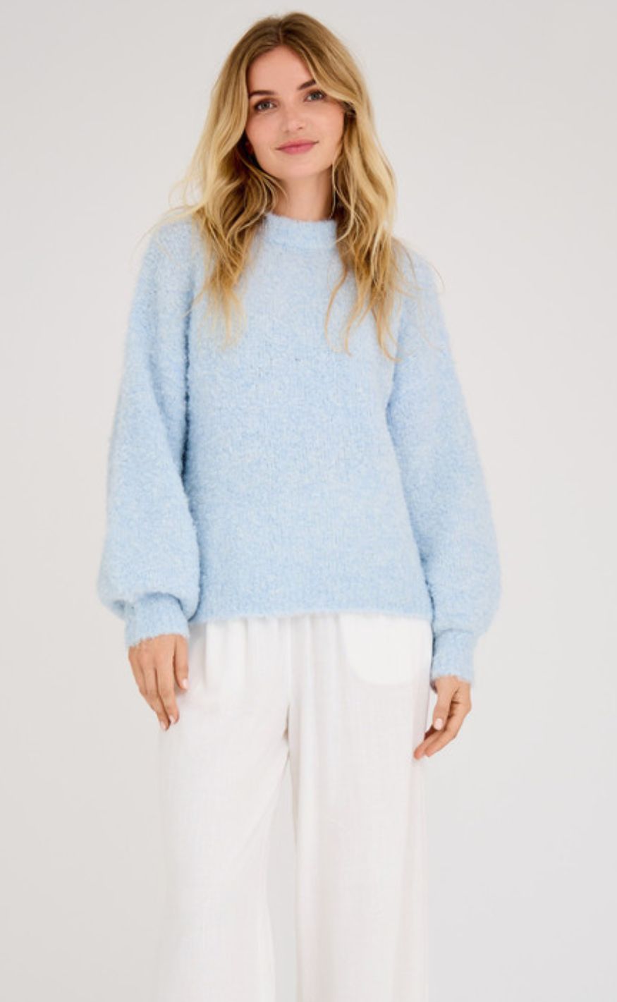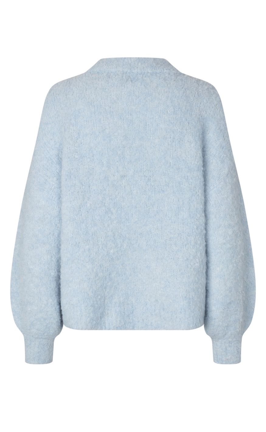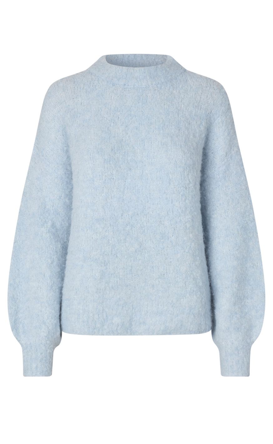 Blød og hyggelig strik med rund hals og lange ærmer med let volumen, som giver et feminint og afslappet udtryk.