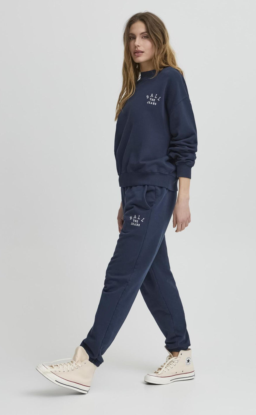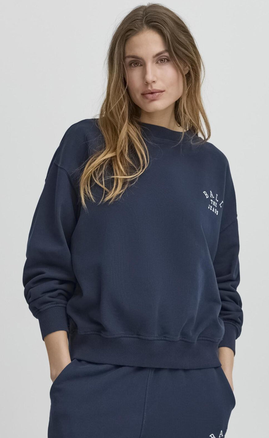 Blød og casual sweatshirt fra BALL Original i en navy nuance med lille logo‑print på brystet.